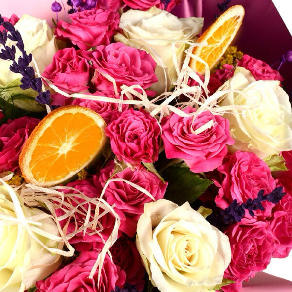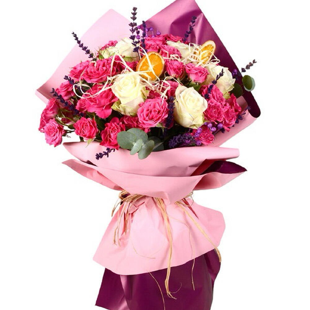 This unique Mixed Bouquet is designed with 5 elegant white roses, 1 sprig of eucalyptus with a refreshing effect, 30 pink arbor roses symbolizing love and happiness, 10 stems of lavender that add a serene atmosphere, 2 dried lemons that give a natural feel, and 5 grams of raffia. With 2 purple luna flowers that have a relaxing effect and 2 pink-lilac bouquet papers adding a romantic touch, it makes a perfect gift option. Appealing to both the eye and the soul, this bouquet offers an extraordinary visual experience.