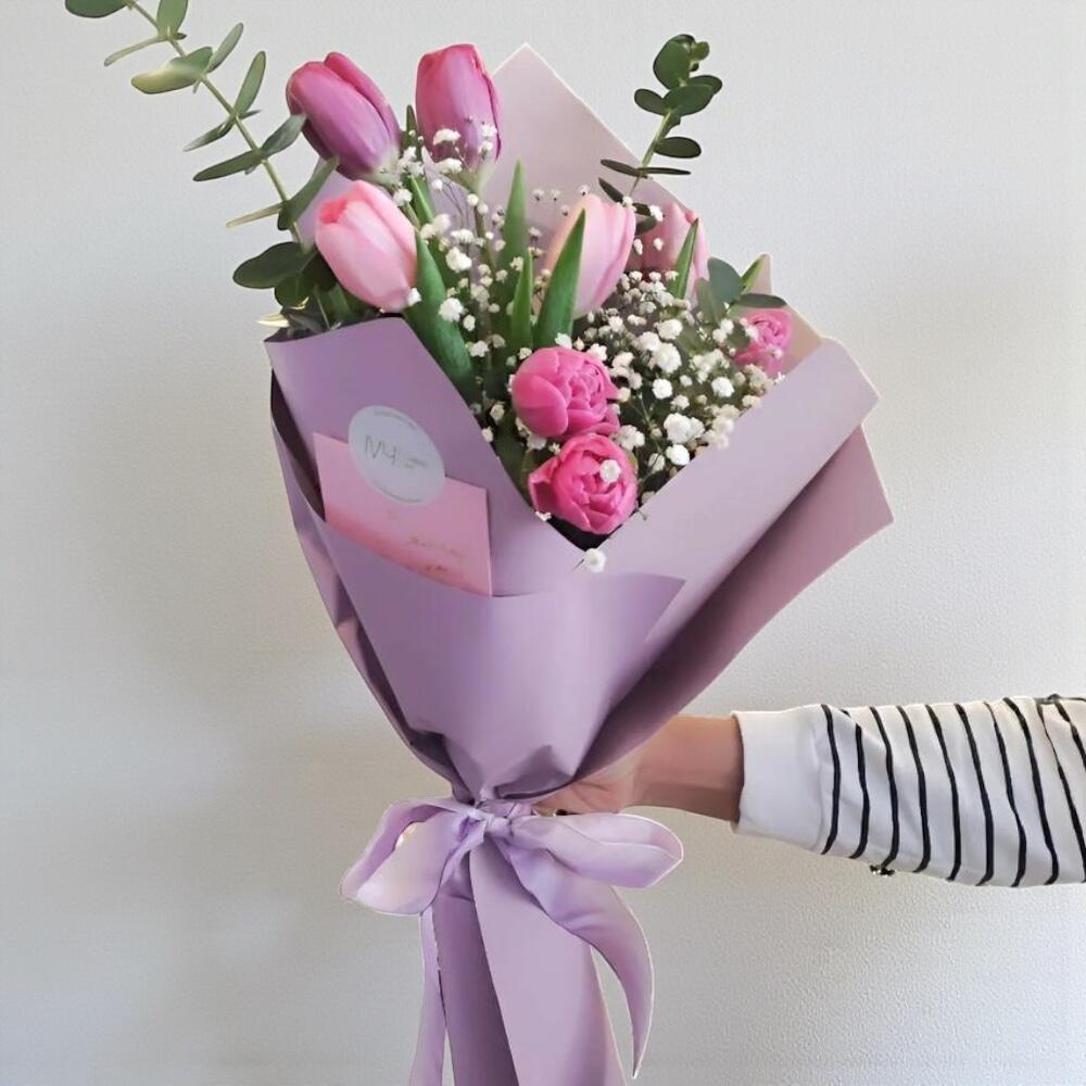 Pembe tonlarının romantizmi ve zarafeti bir araya getiren Pembe Lale Buketi, özel günlerde sevdiklerinize duyduğunuz sevgiyi ve ilgiyi en güzel şekilde ifade etmenin mükemmel yoludur. Bakım Önerileri: Buketinizin daha uzun süre taze kalması için doğrudan güneş ışığından ve aşırı sıcak ortamlardan uzak tutun. Saplarını belirli aralıklarla keserek temiz bir vazo içinde serin ve taze su ile muhafaza edin. Suyunu her 2-3 günde bir değiştirerek lale ve diğer çiçeklerin ömrünü uzatabilirsiniz.