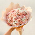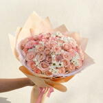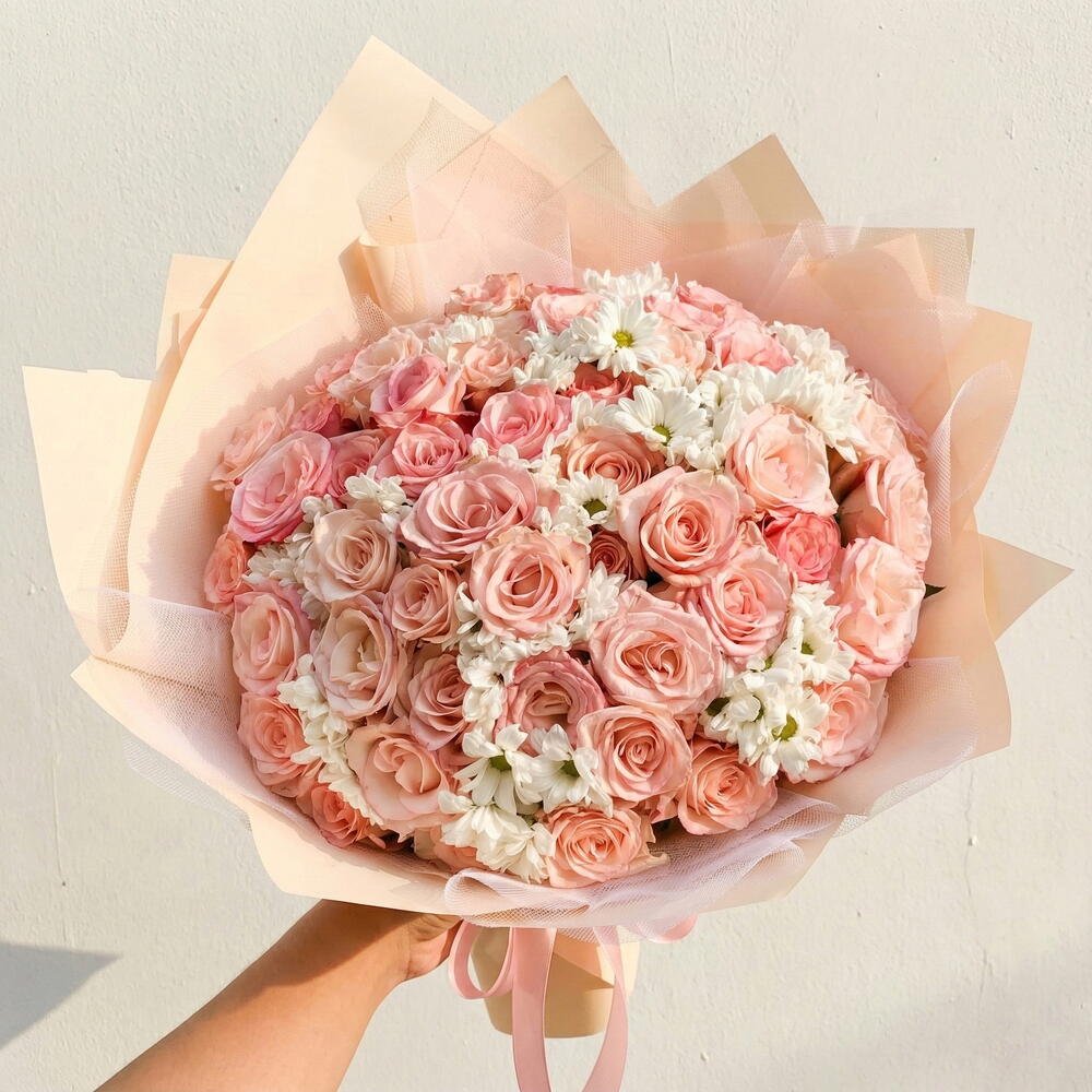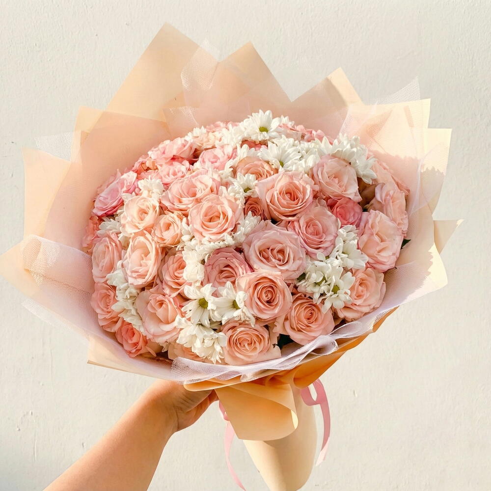 pembe gül - 41 pcs beyaz papatya - 15 pcs