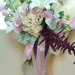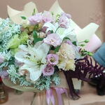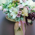 Lily - 3 pcs lisianthus pink - 7 pcs salmon lisianthus - 11 pcs decorative leaves - 7 pcs
