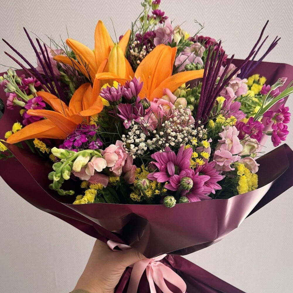 sweet william - 15 pcs pembe krizantem - 25 pcs orange lily - 5 pcs