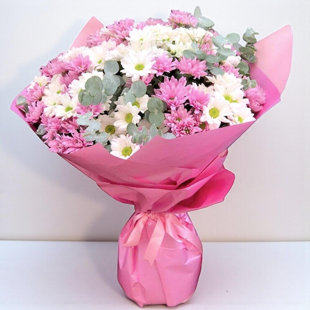 This elegant flower bouquet consists of 30 white daisies brimming with freshness and beauty, and 30 pink daisies that symbolize romance. This stunning mix is guaranteed to impress everyone who sees it. Expressing both elegance and joy, this bouquet is a perfect choice as a meaningful gift for all your special occasions.