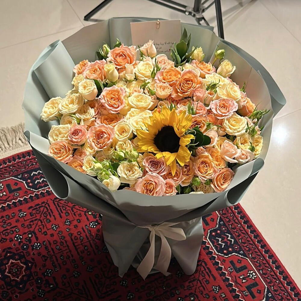 pembe gül - 35 pcs ayçiçeği - 2 pcs sarı gül - 35 pcs