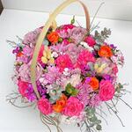 This charming basket is a colorful composition consisting of 15 mixed roses and 10 assorted seasonal flowers. Filled with fresh, vibrant flowers, this basket is designed to add cheer to any space. A perfect choice for both home and office décor, this product is also ideal for sending to your loved ones. This elegant arrangement, created by the different colors of the flowers' breathtaking beauty, will win everyone's admiration.
