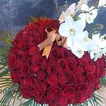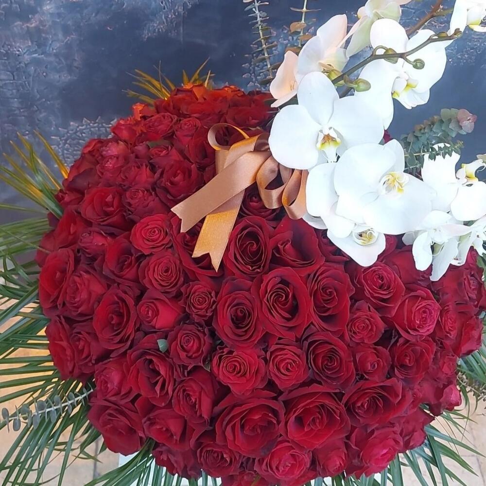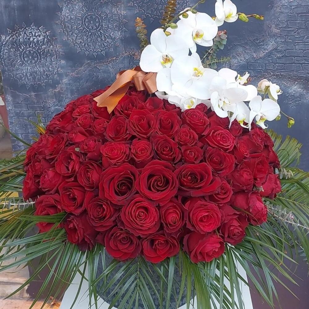 kutu - 1 pcs kırmızı gül - 100 pcs orkide - 1 pcs