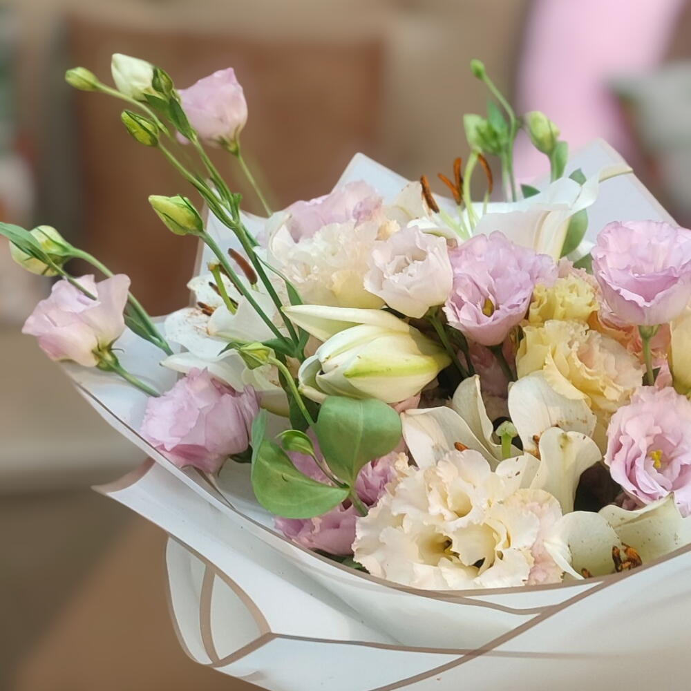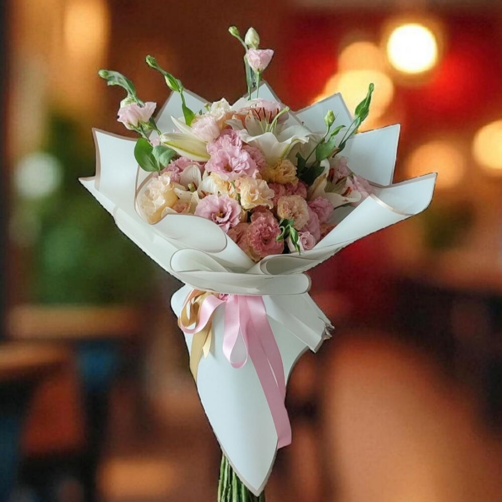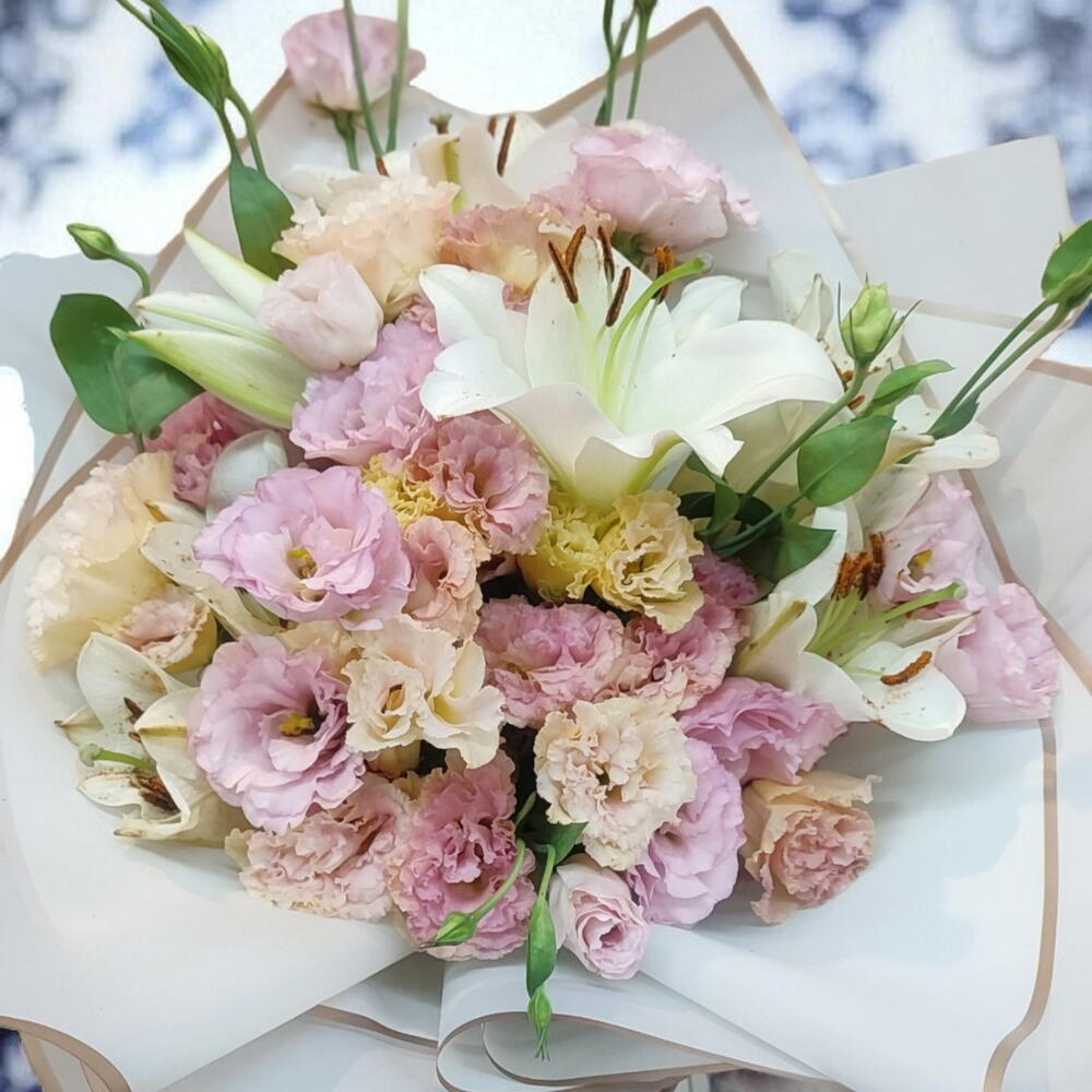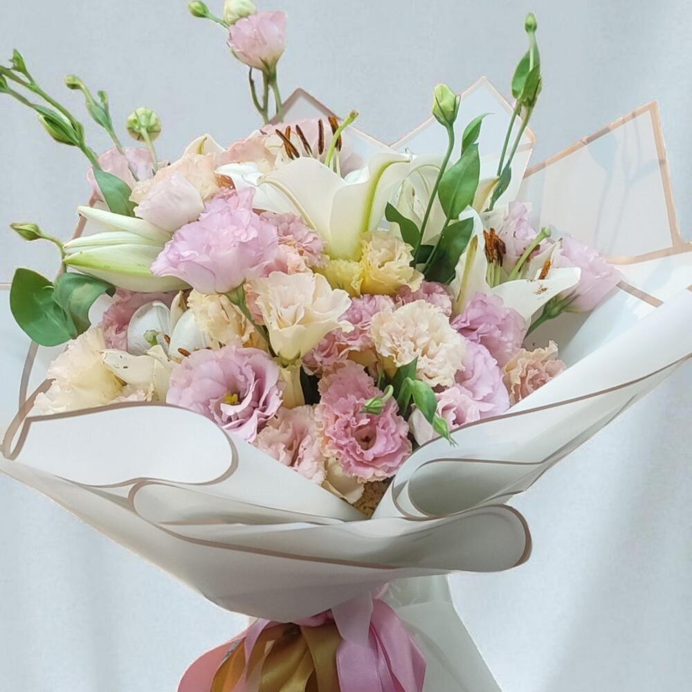 lily white - 1 pcs lisianthus pink - 11 pcs salmon lisianthus - 11 pcs