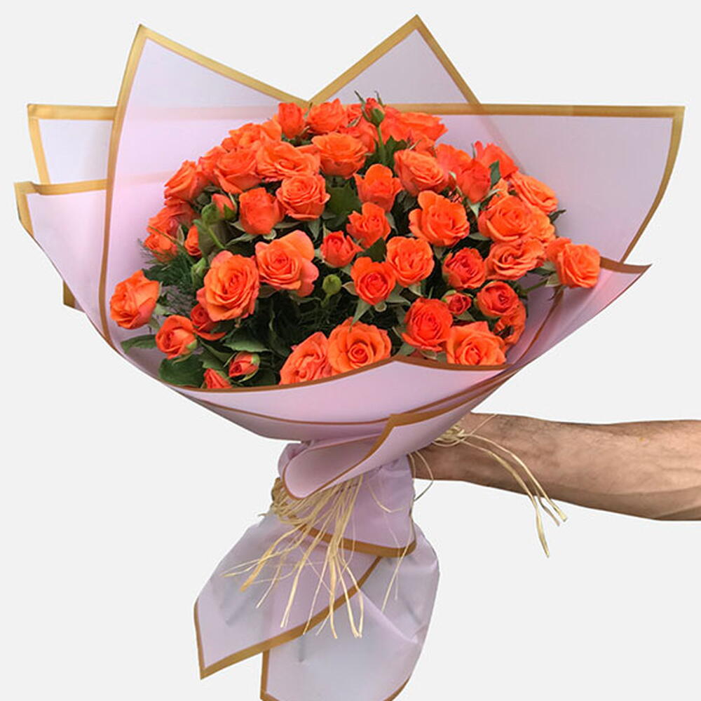 ambalaj - 2 pcs orange spray rose - 20 pcs imported orange rose - 21 pcs