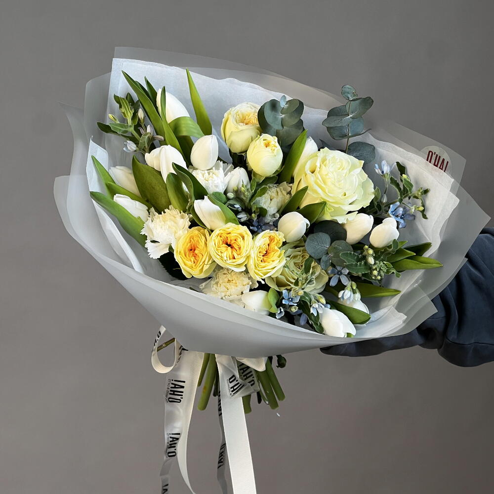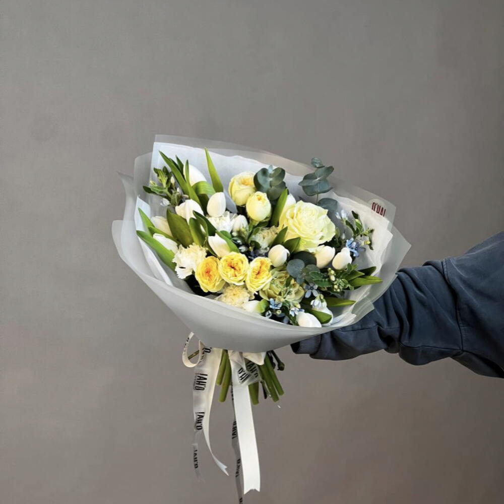 A stylish and fresh bouquet with a harmonious mix of seasonal flowers, light, elegant, and full of natural beauty, perfect for any occasion—whether you want to surprise, celebrate, or simply brighten someone’s day