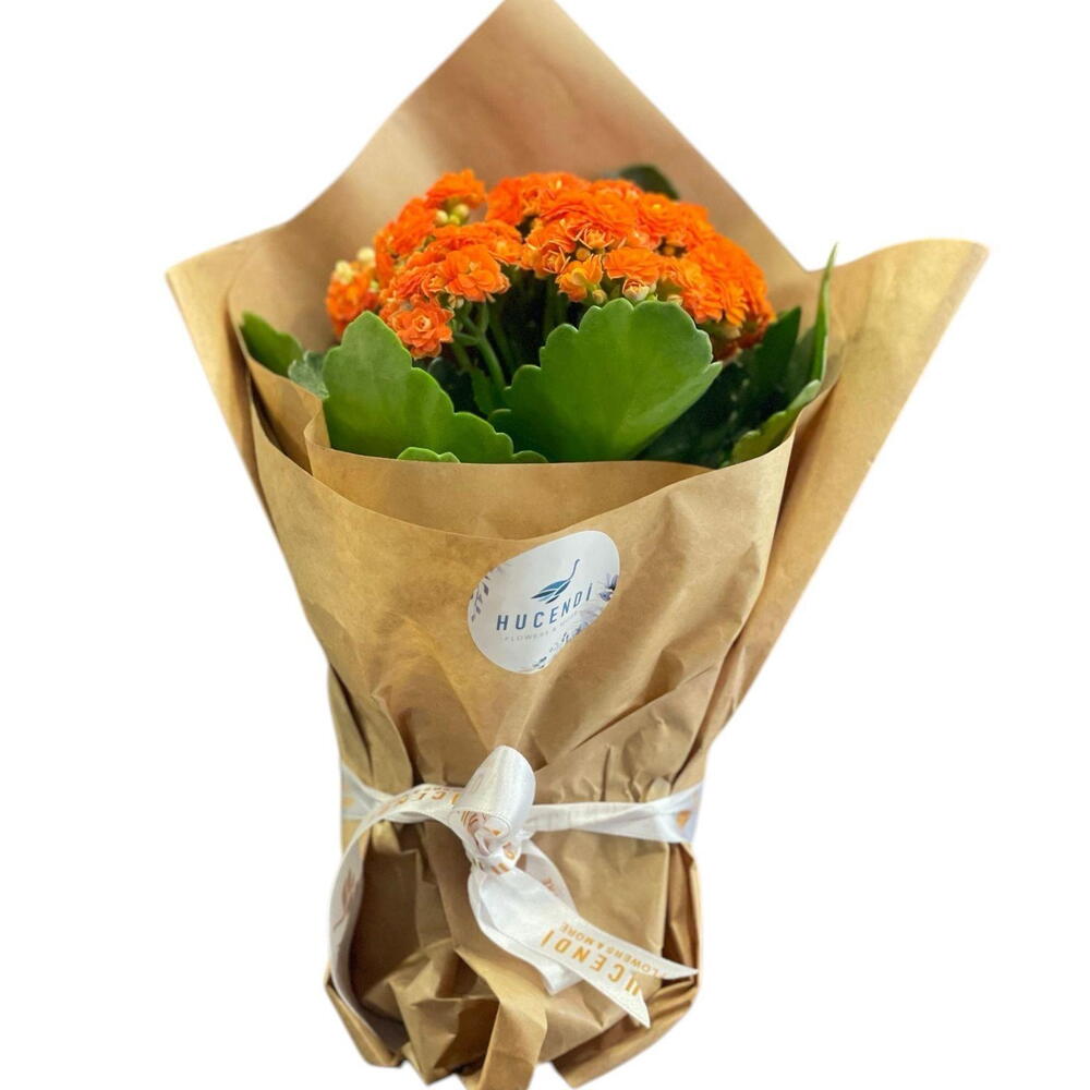 Kraft Ambalajlı Turuncu Kalanşo Saksı Çiçeği