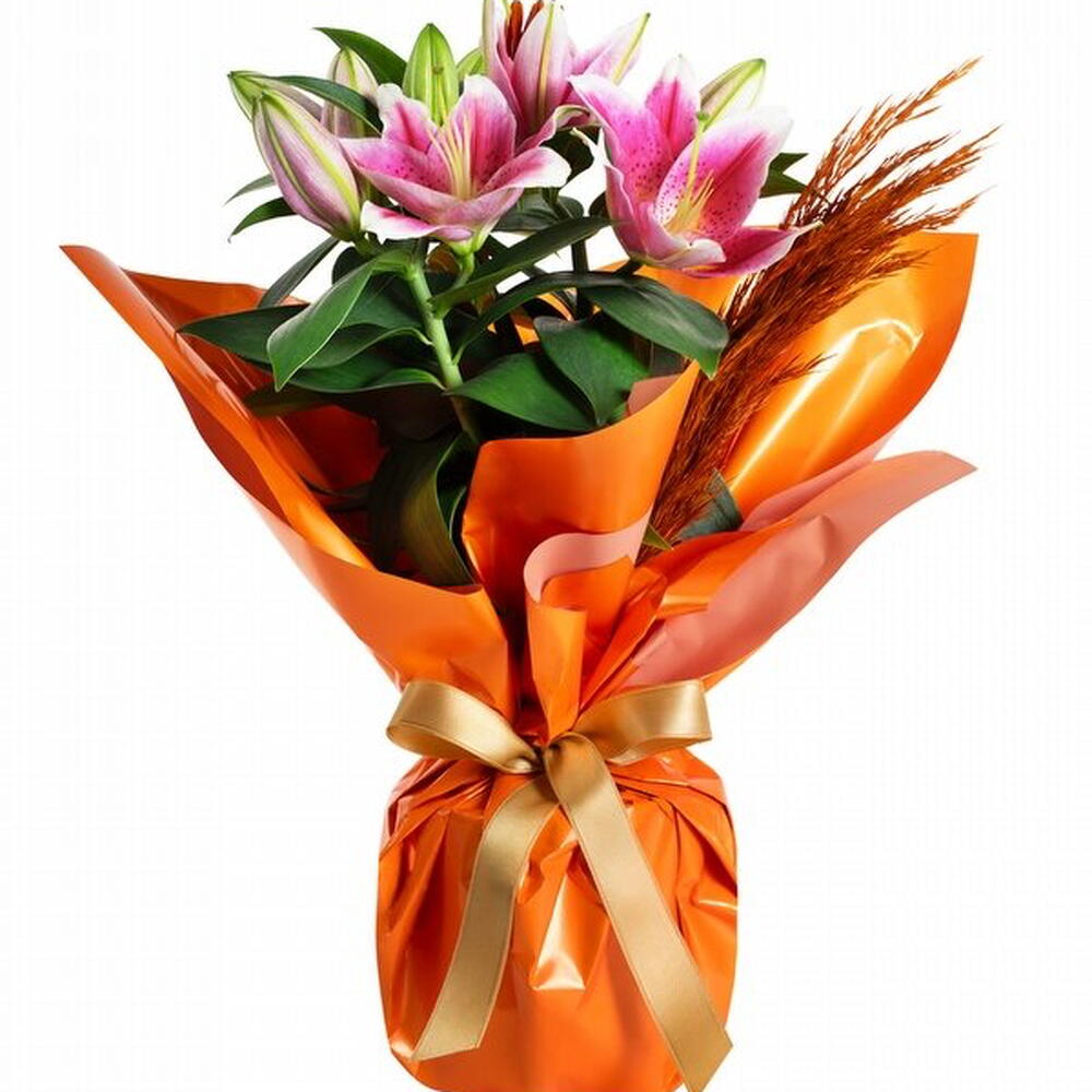 The pink potted lily, commonly known as "zambak", is a potted plant that is very fragrant and whose scent spreads.