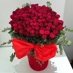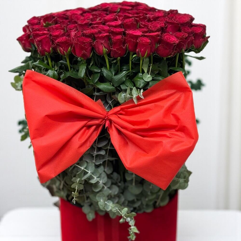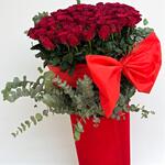 Red rose - 101 adet okaliptüs - 100 adet 1 metre kutu - 1 adet büyük fiyonk - 1 adet