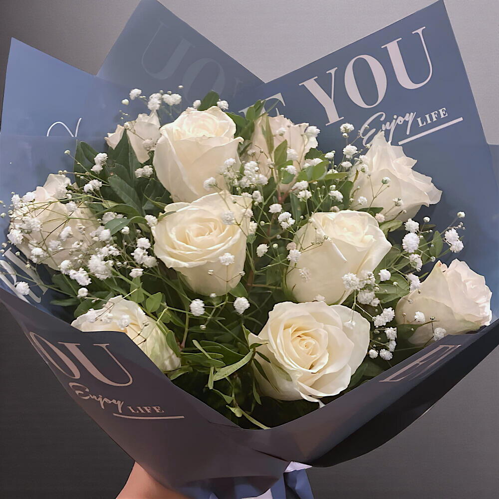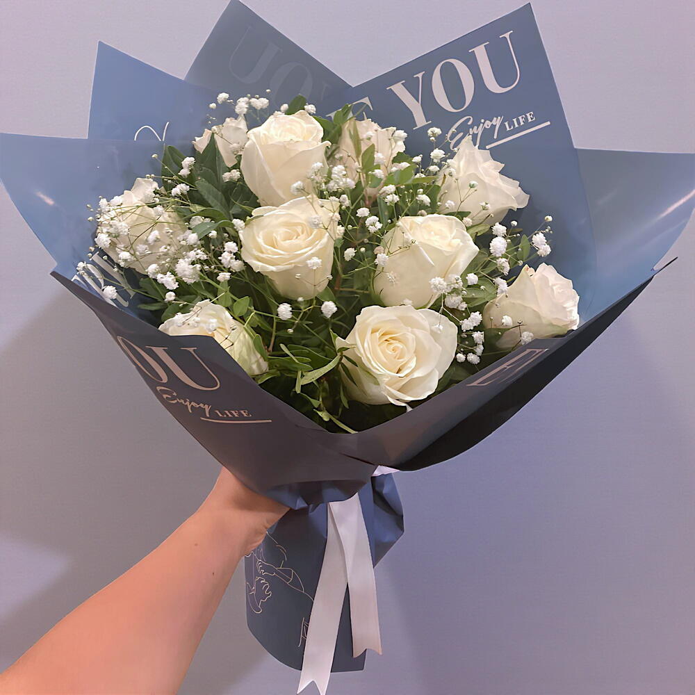 beyaz gül - 10 adet yeşillik ve cipso - 8 adet