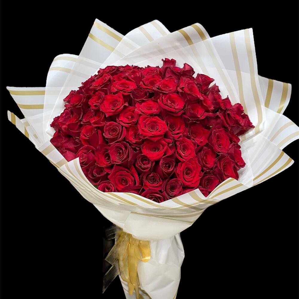 Bu muhteşem çiçek buketi, 101 adet derin kırmızı gül ile tasarlanmıştır. İster doğum günü, ister yıldönümü, isterse de sıradan bir gün olsun, bu gül buketi ile sevdiklerinize olan sevginizi gösterin. Kırmızı güller, aşkın ve tutkunun en belirgin sembolüdür ve bu da bu buketin mükemmel bir romantik hediye olmasını sağlar. Çarpıcı rengi ve tatlı kokusuyla, bu çiçek buketi herhangi bir odaya neşe katacak. Bu çiçekler uzun süre taze kalır ve sevdiklerinizin gününe parlaklık getirir.