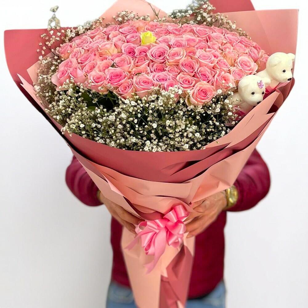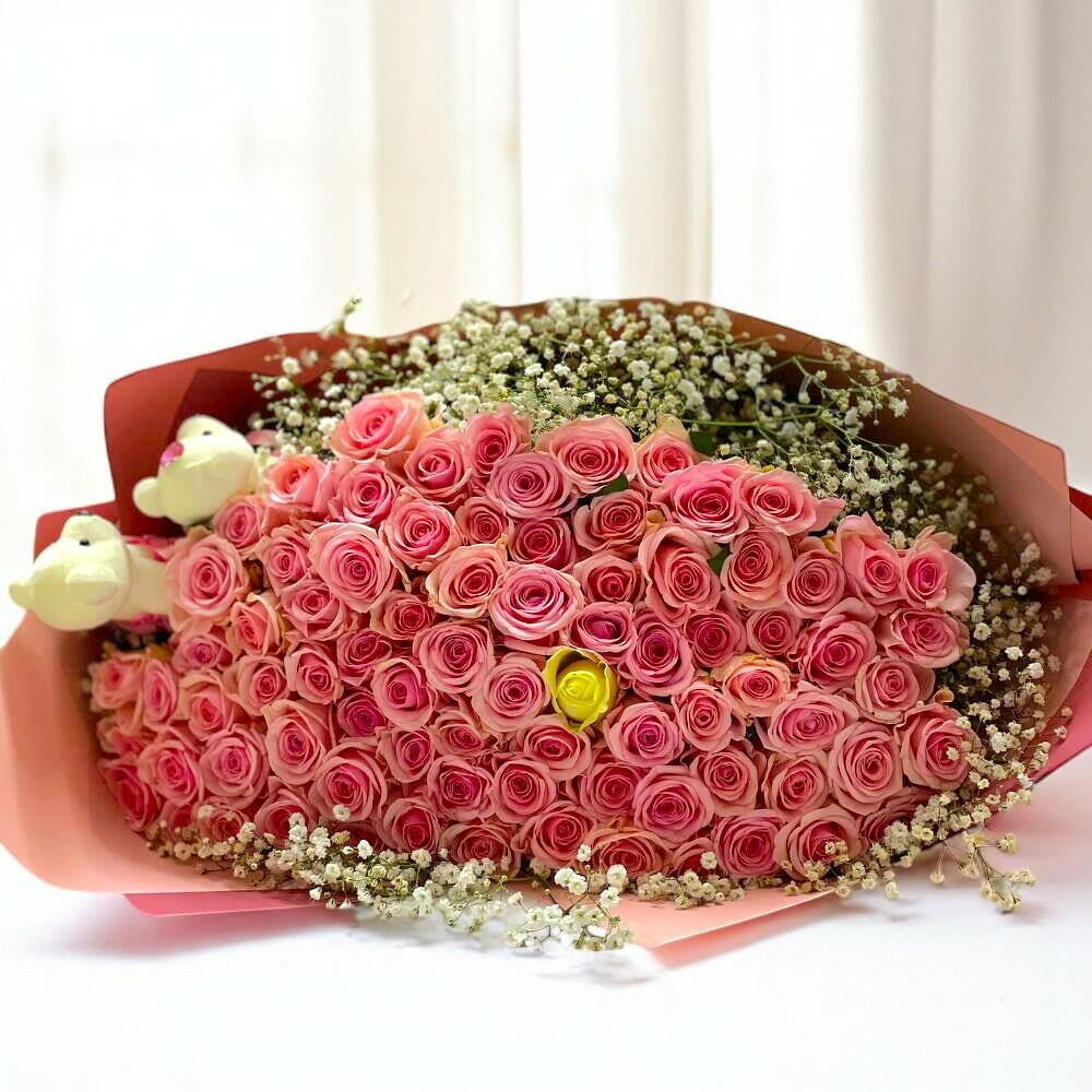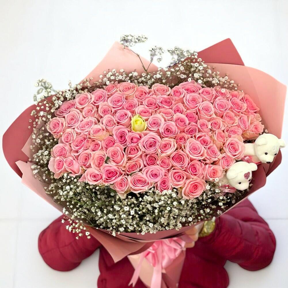 101 Gullu Aşk Buketi – Pembe Gul Buketi ile Kalbe Dokunan Hediye