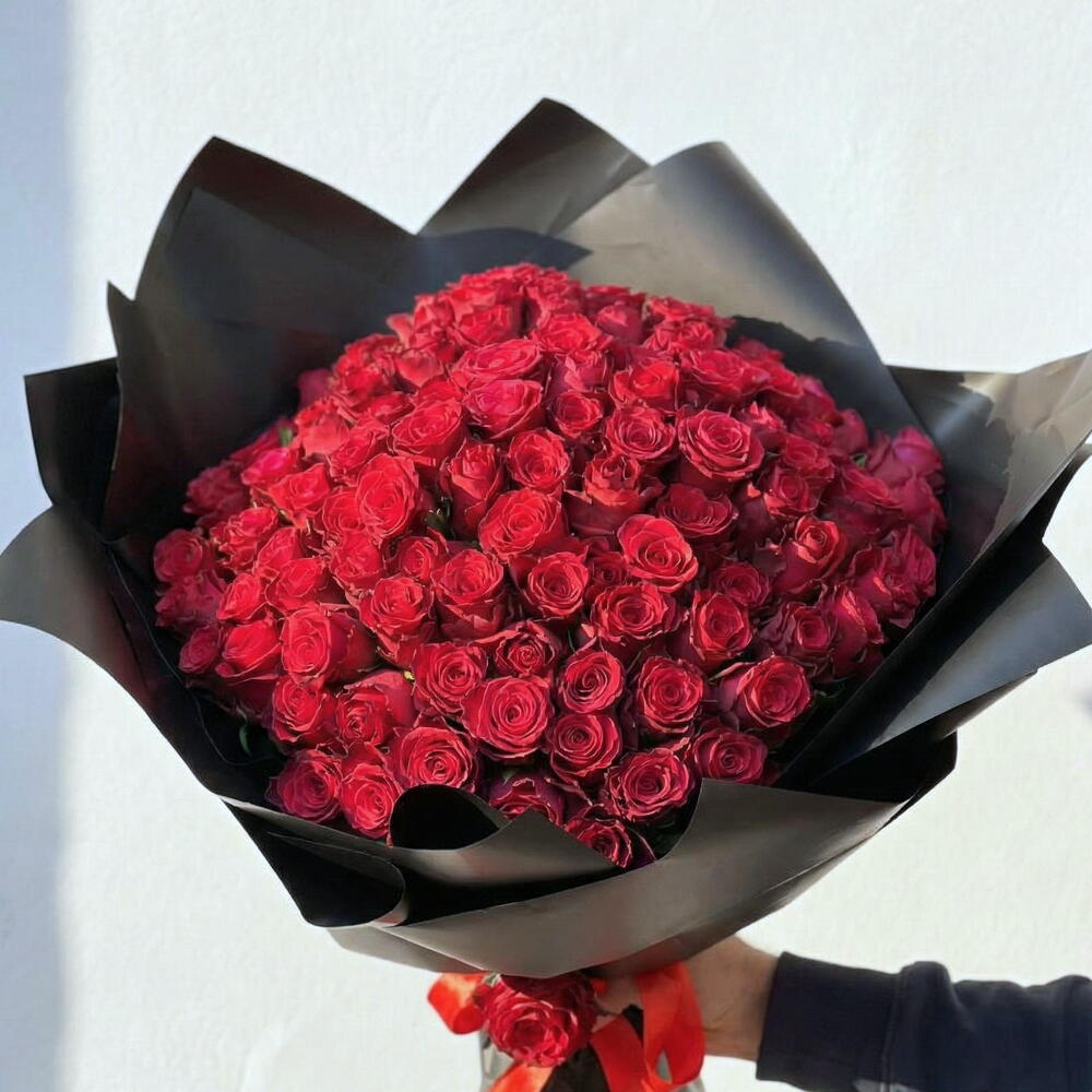 Bu büyüleyici çiçek buketi, 101 adet canlı kırmızı gülden oluşmaktadır. Bu parlak gül ormanını iki adet zarif kırmızı kurdele güzelce toplar ve 10 adet siyah ambalaj kağıdıyla mükemmel bir şekilde süsler. Bu buket, sevdiklerinize aşk ve tutkunuzu ifade etmenin en iyi yoludur.
