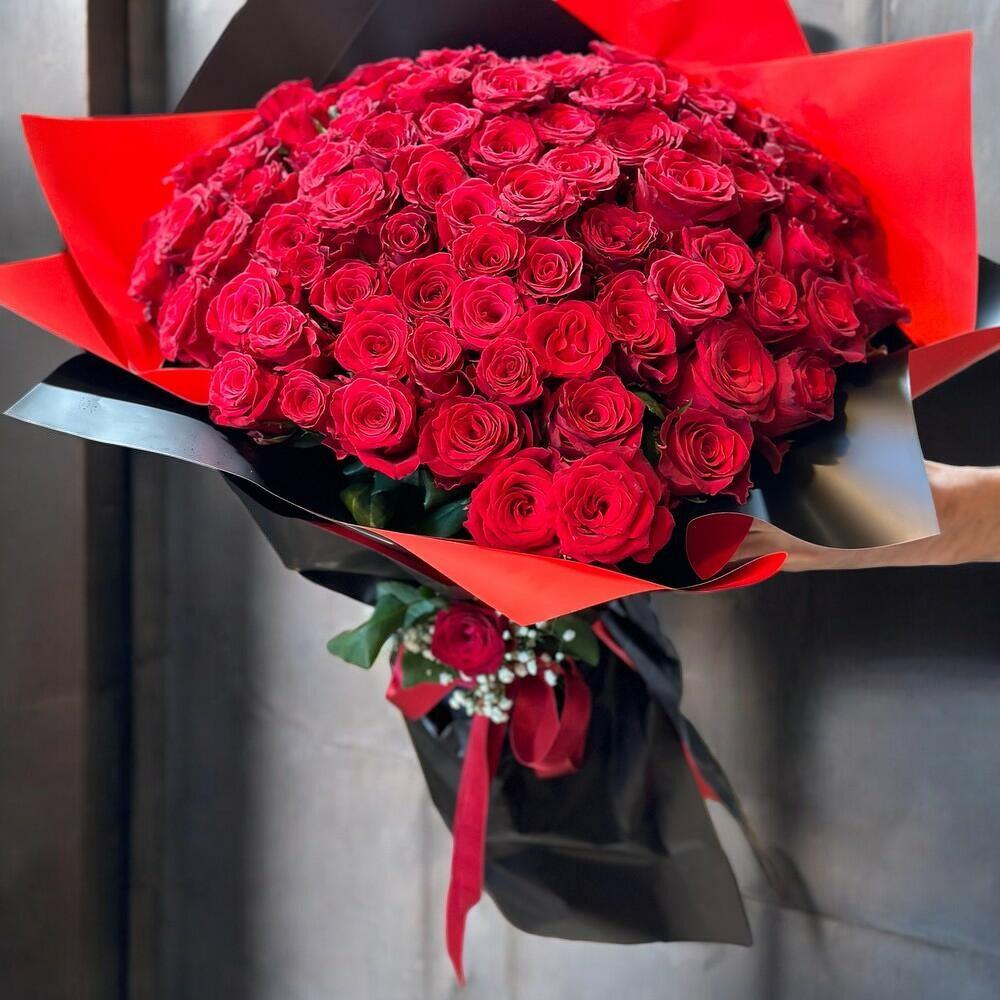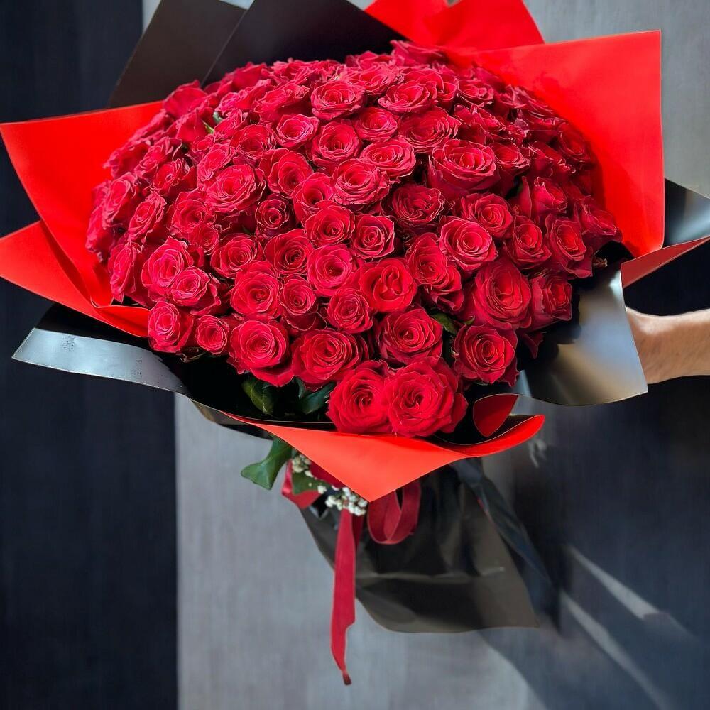 Bu özel tasarım ürün, romantizmi simgeleyen 101 adet kırmızı gül ve zarif detayları tamamlamak için 5 dal gipsafila kullanılarak oluşturulmuştur. Çarpıcı ve göz alıcı bu tasarım, kalbinizin sesini yüksek sesle ve net bir şekilde iletmek istediğiniz her anın mükemmel eşlikçisidir. Bir sevdiklerinizi özel hissettirmenin en güzel yolu!
