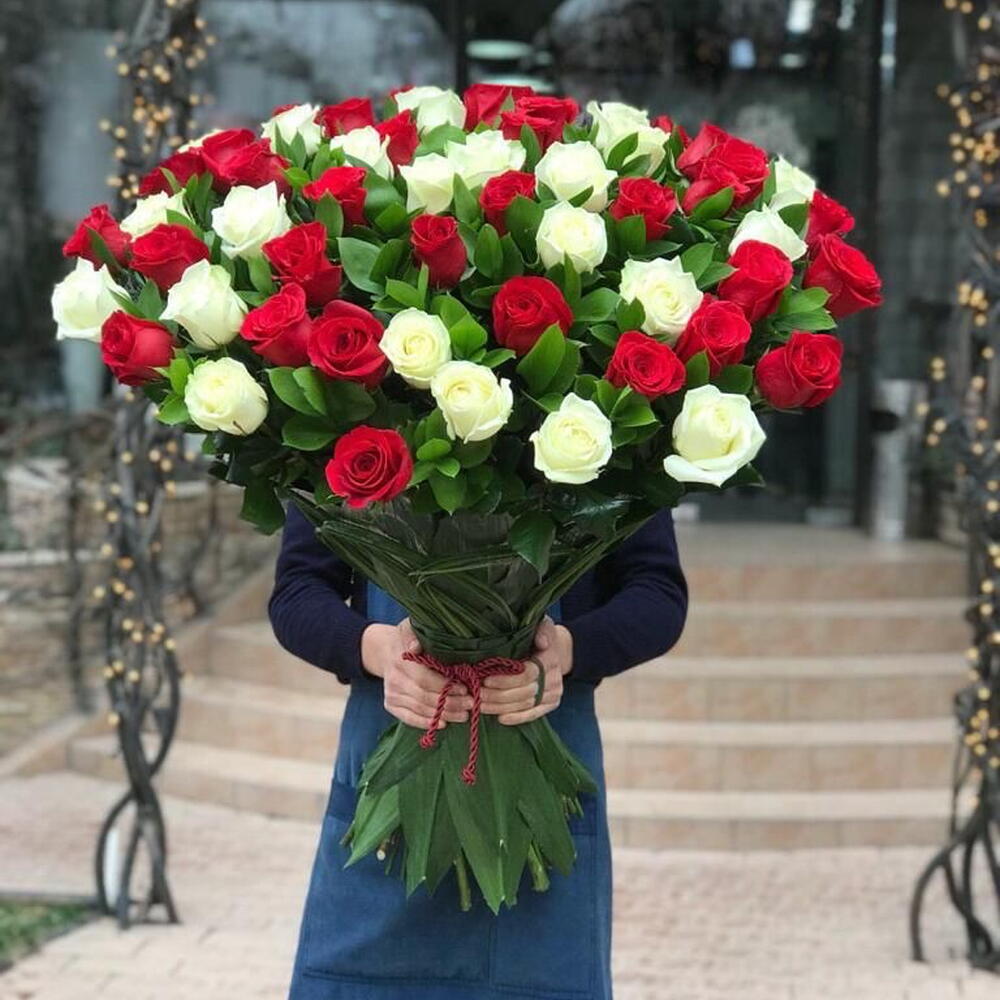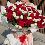 Kırmızı gül - 51 adet ve beyaz gül - 50 adet oluşan bu muhteşem çiçek buketi, aşk ve masumiyetin mükemmel birleşimi. Her bir gül itina ile seçilmiş ve zarif bir buket şeklinde düzenlenmiştir. Bu buket, özel birini şımartmak veya önemli bir günü kutlamak için idealdir. Sevdiklerinizin kalbine dokunacak bu etkileyici çiçekler, onların gününü aydınlatmak için mükemmel bir seçimdir.