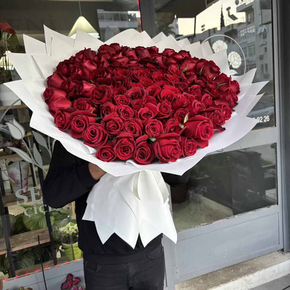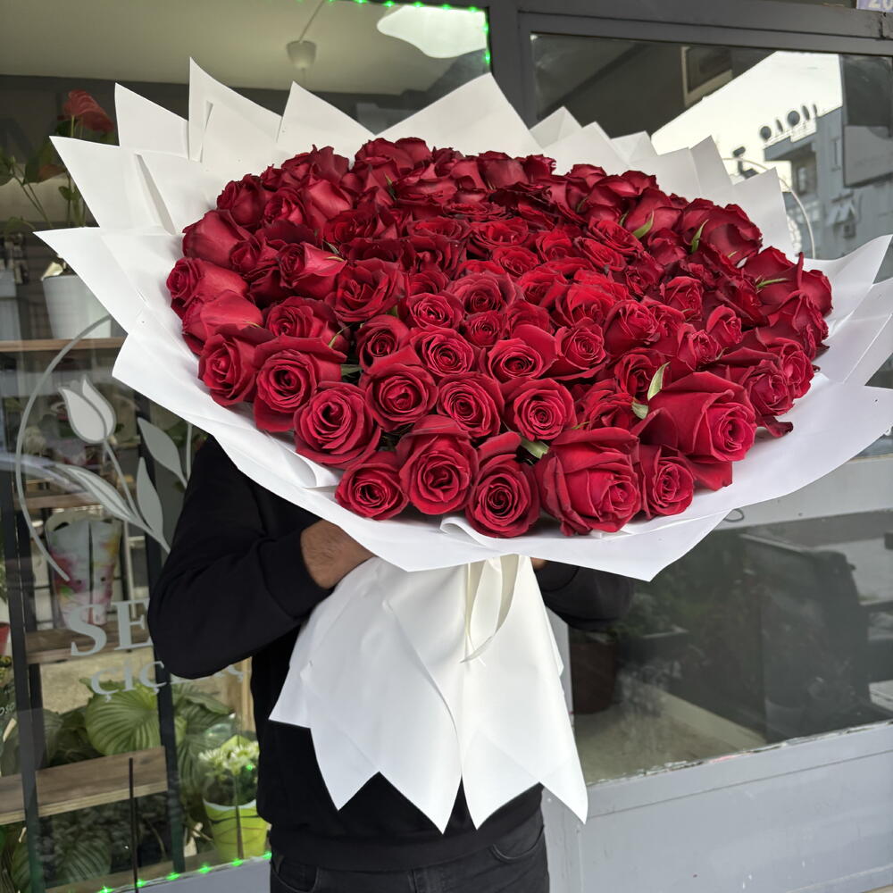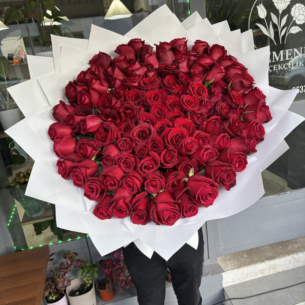 Aşk büyük yaşanır… 101 tane kırmızı gül ile unutulmaz bir an yaratın 🌹 Premium güller, özenli sarım ve kusursuz sunum.