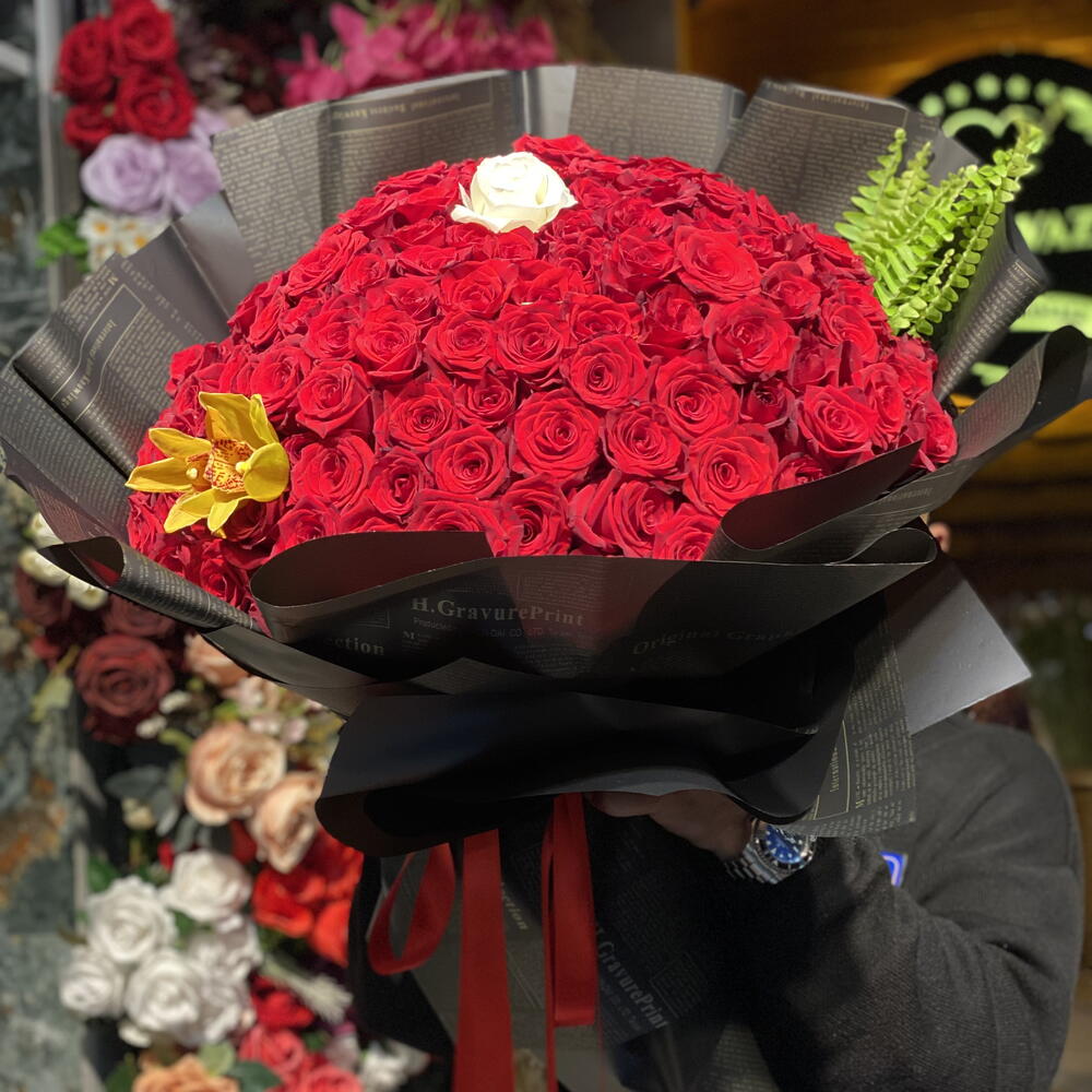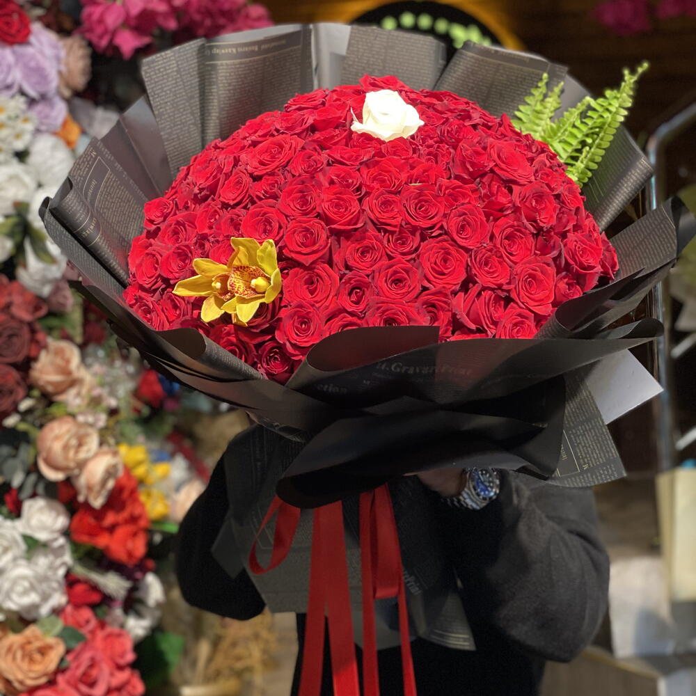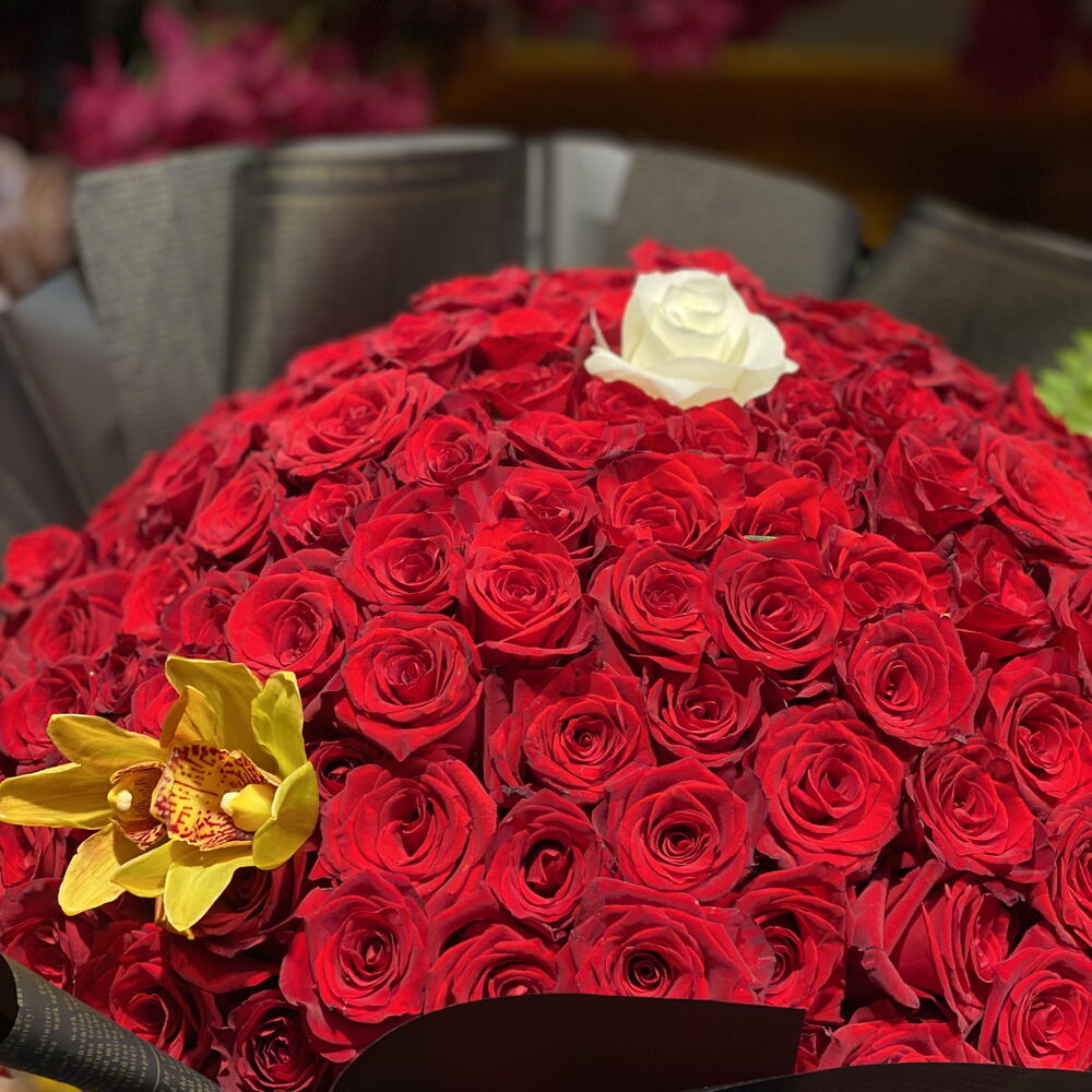 gül - 100 adet beyaz gül - 1 adet orkide - 1 adet