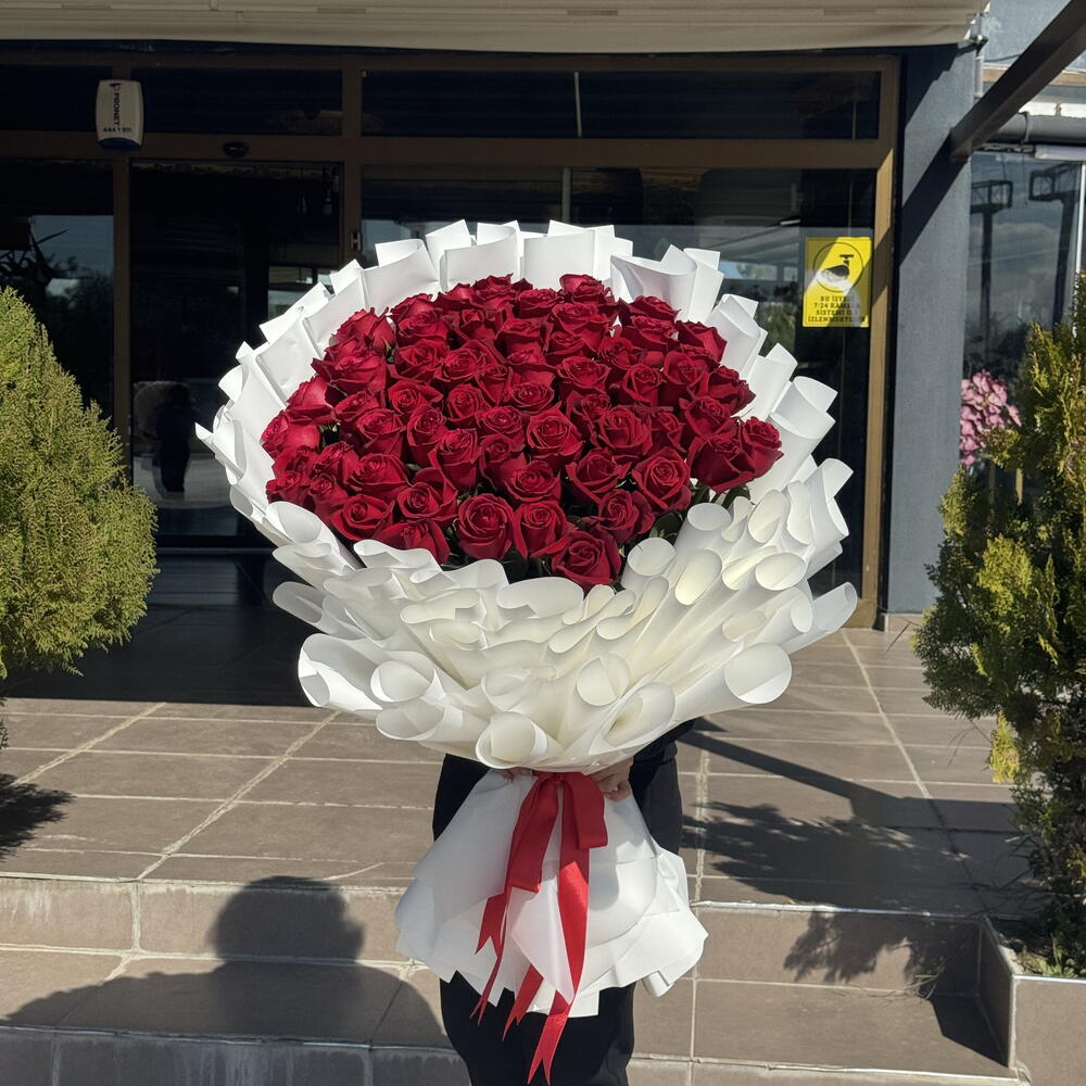 101 adet ithal gül buketi Bu nefes kesici Mono Buket ile derin duygular dalgasını uyandırın. 101 adet tutkuyla kırmızı gülden oluşan bu çiçek düzenlemesi yoğun sevgi ve hayranlık yayıyor. Her canlı çiçek el ile seçilmiş olup yalnızca en iyi kaliteyi garanti ederek zarif ve zamansız bir ifade yaratır. Büyük duyguları ifade etmek, yıldönümleri veya sadece çünkü demek için mükemmeldir; bu Mono Buket saf, ölümsüz sevgiyi yansıtır.