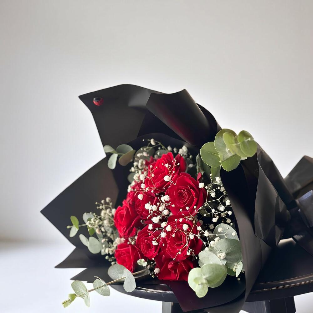 Bu etkileyici Mono Buket, sevgiyi ve ihtirası temsil eden 11 adet kırmızı gülle süslenmiştir. Ayrıca, ferahlatıcı ve doğal bir his katan 6 adet okaliptüs dalı ve sofistikasyonu tamamlayan 6 adet cipso ile birlikte gelir. Bu buket, ister bir sevdiklerinize hediye, ister eviniz için şık bir dekorasyon olsun, mükemmel bir seçimdir.