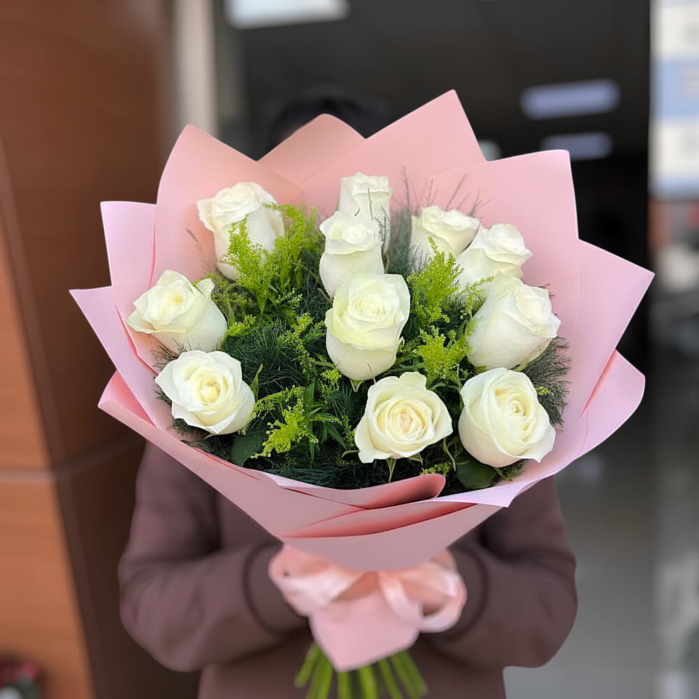 11 li Beyaz Gul Buketi