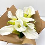 Zarafetin ve saflığın simgesi olan 11 adet uzun beyaz gala çiçeğinden oluşan bu özel buket, modern ve sade bir tasarımla sunulmaktadır. Gala çiçeğinin büyüleyici duruşu, her türlü özel anı taçlandırmak için idealdir. Şık kraft ambalajla sunulan bu buket, minimalizmi ve doğallığı bir araya getirerek, hem hediye olarak hem de dekoratif amaçlı kullanılabilir. Bakım Tavsiyeleri: Gala çiçeklerinizi oda sıcaklığında temiz su dolu bir vazoya yerleştiriniz. Sap uçlarını çapraz bir şekilde keserek su emilimini artırabilirsiniz. Vazonuzdaki suyu her gün değiştirerek çiçeklerin tazeliğini koruyunuz. Buketinizi direkt güneş ışığından ve rüzgarlı ortamlardan uzak tutarak ömrünü uzatabilirsiniz. Çiçekleri sıkışık bir vazoda bulundurmaktan kaçının.
