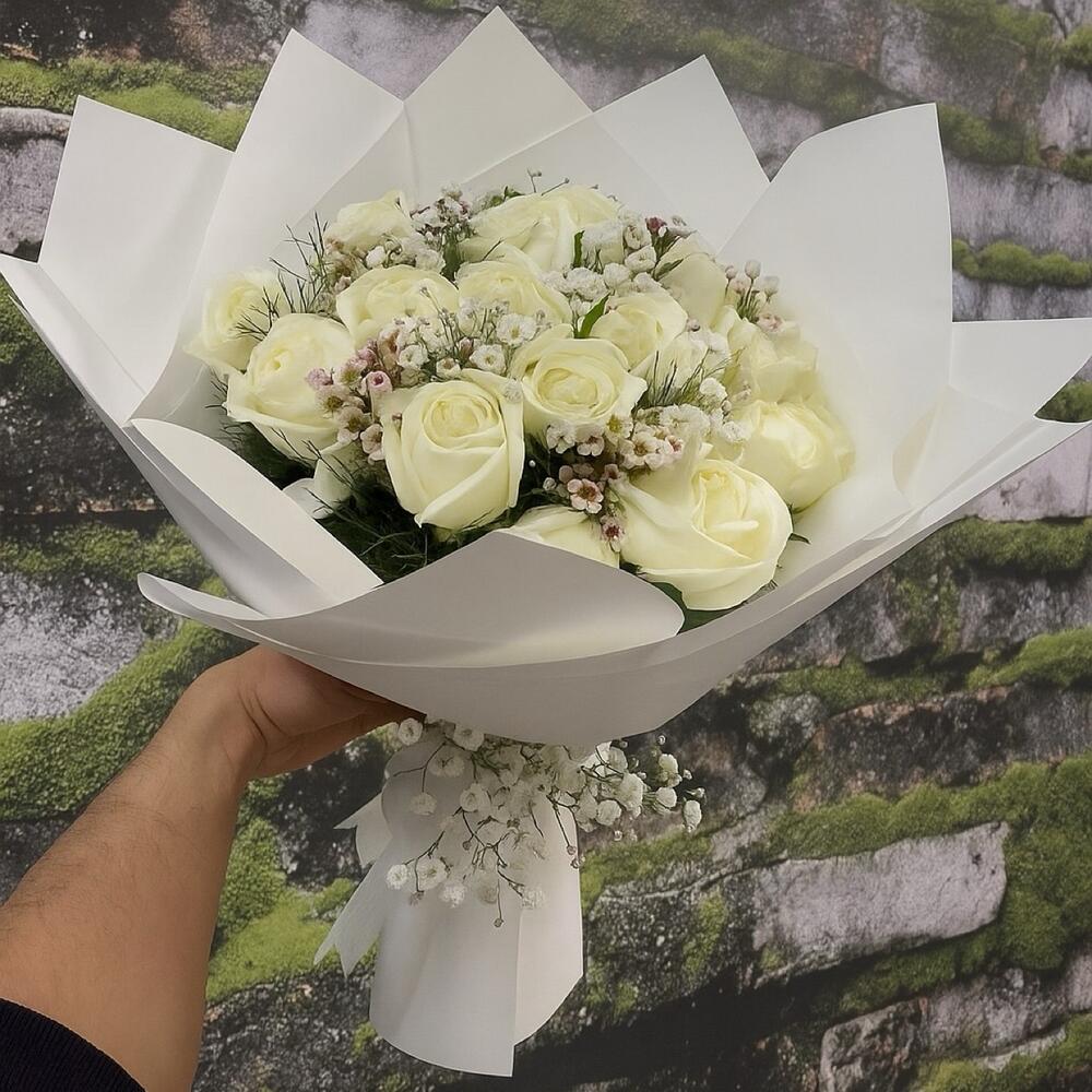 🤍 15 Adet Beyaz Gul Buketi – Zarafetin ve Saf Sevginin Sembolu 🤍