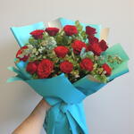Kırmızı güllerin büyüleyici güzelliği ve okaliptüs yapraklarının ferahlatıcı dokunuşu ile hazırlanan bu buket, duygularınızı en zarif şekilde ifade etmenin mükemmel yoludur. Aşkı, tutkuyu ve bağlılığı simgeleyen kırmızı güller, şık mavi ambalajıyla sofistike bir görünüm kazanarak özel anlarınızı daha da unutulmaz kılar. Doğanın tazeliğini yansıtan yeşillikler, çiçeklerin zarafetini ön plana çıkararak buketi daha etkileyici hale getirir. Buketi serin ve gölge bir ortamda muhafaza edin. Çiçeklerin saplarını her 2-3 günde bir çapraz keserek suyu daha iyi almalarını sağlayın. Vazonun suyunu her gün tazeleyerek güllerin canlı kalmasını destekleyin. Direkt güneş ışığı, rüzgar ve klimadan uzak bir yerde muhafaza ederek çiçeklerin ömrünü uzatabilirsiniz.