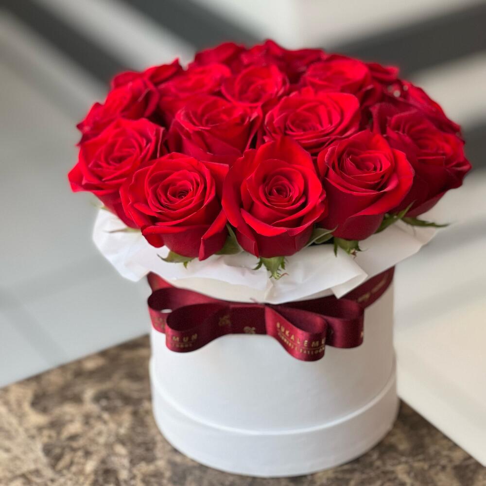Silindir kutu içerisinde 15-17 kırmızı gül.