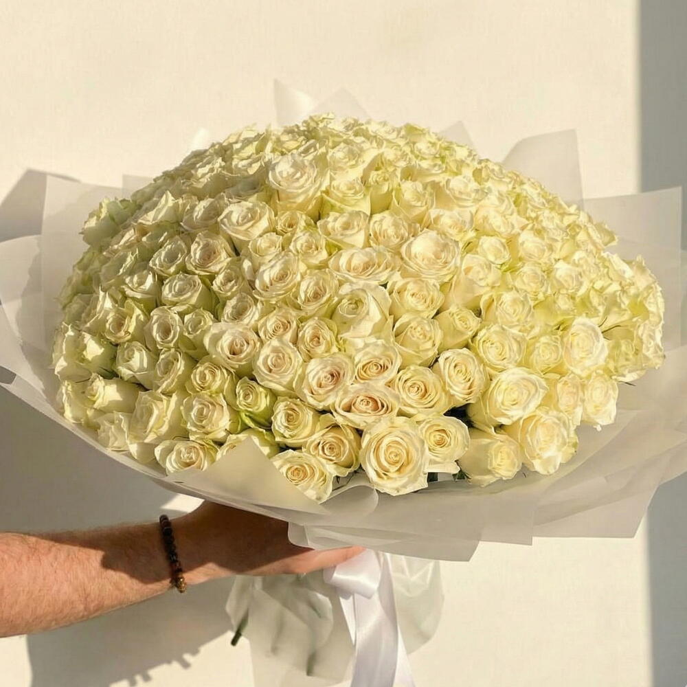 El degmemis 151 beyaz gül içeren buketimizle görkemli bir ifade yaratin. Her bir çiçek safligin, zarafetin ve sonsuz askin sembolüdür ve sofistike bir görünüm sergileyen nefes kesici bir aranjman yaratir. Dügünler, yildönümleri veya kelimelerin yetersiz kaldigi her an için mükemmel olan bu lüks buket, hayranlik ve bagliligin nihai ifadesidir. Klasik güzellikleri ve dingin duruslariyla beyaz güllerin bollugu, onu alan herkes üzerinde kalici bir etki birakacaktir. Not: Mevsim sartlarina ve stok durumuna göre renk tonlarinda ufak degisiklikler olabilir.