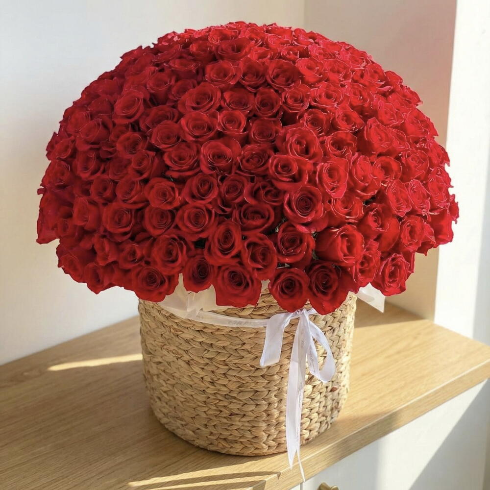 Gerçek aşkı kelimelerle anlatmak zor olabilir… Ama bu dev kırmızı gül sepeti, duygularınızı en çarpıcı şekilde ifade eder. Onlarca, belki yüzlerce gülün büyüleyici görünümüyle hazırlanan bu özel aranjman; etkileyici bir sürpriz ve unutulmaz bir hediye arayanlara özel. 🌹 Aranjman Detayları: • Yoğun kırmızı ithal güller • El yapımı hasır sepet • Beyaz saten kurdele ile süsleme • Premium boyut – dikkat çekici, fotoğraflık sunum 💘 Kimler İçin Uygun? • Sevgililer Günü hediyesi • Evlilik teklifi • Yıldönümü kutlamaları • “Seni seviyorum” demenin en iddialı yolu 🎁 Kişisel not ekleme ve özel teslimat seçeneğiyle ⸻ Aşkınızı anlatacak tek bir aranjman varsa, işte tam karşınızda! Büyük konuşun, büyük sevginizi gösterin!
