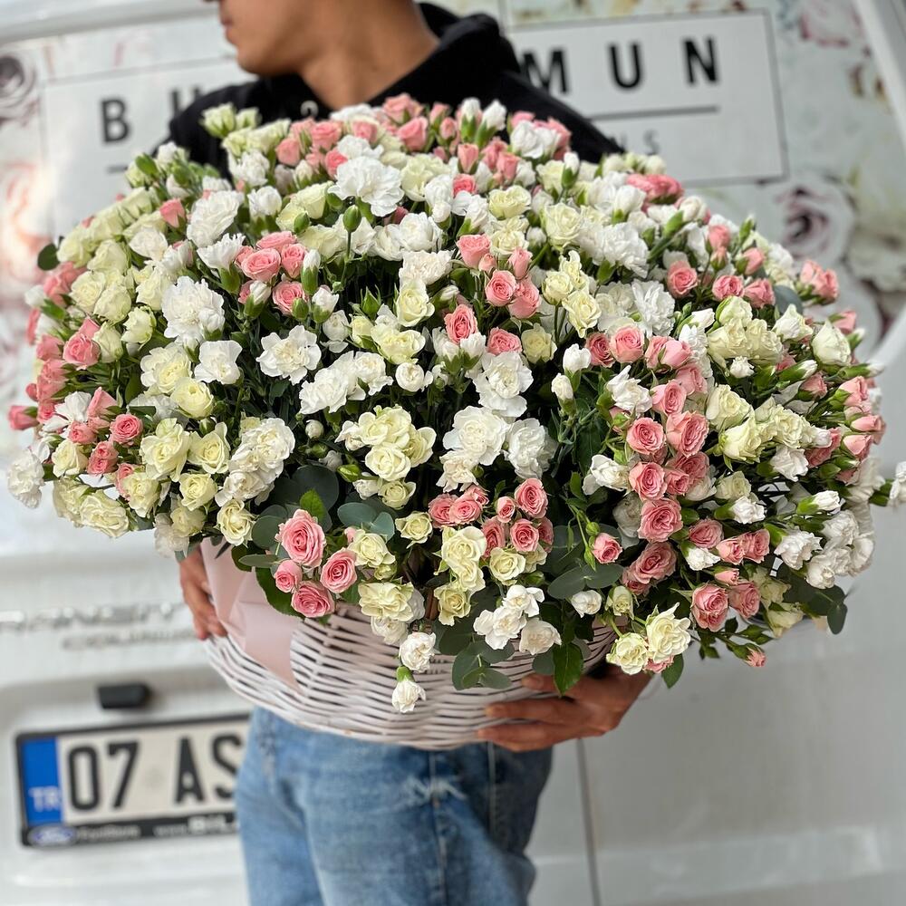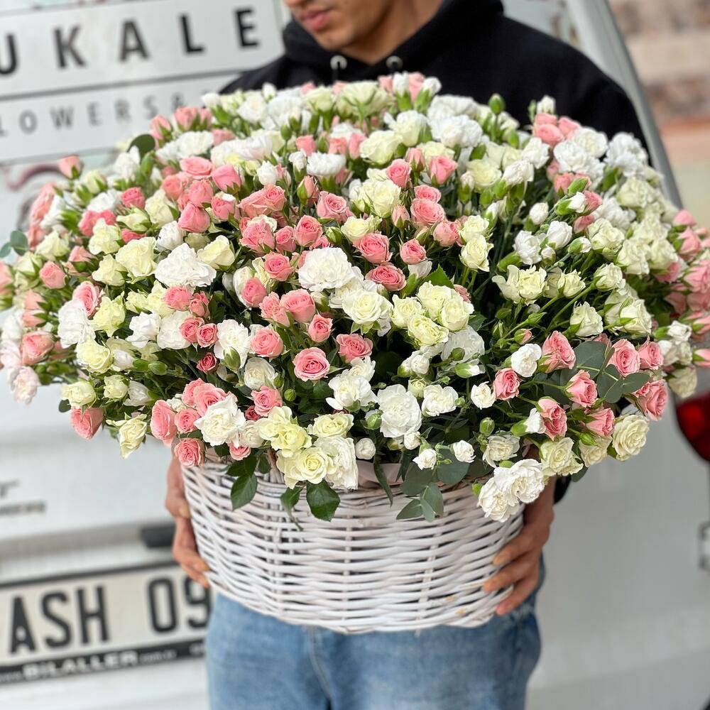 151 adet spray gül pembe beyaz.