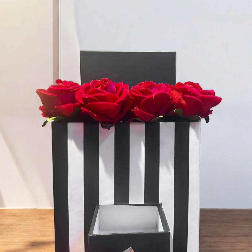 16 Kırmızı Yapay Gul Siyah Beyaz Kutulu Hediye Kutusu