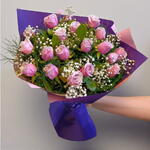 Romantizmin en zarif haliyle hazırlanmış bu pembe gül buketi 💕🌸, yumuşak tonları ve zarif düzenlemesiyle sevgi dolu duyguları ifade etmenin en şık yoludur. Mor ve pembe ambalajın modern uyumu, bukete hem canlılık hem de zarafet kazandırır. Her bir gül, tazelik ve inceliğiyle özel anlarınıza anlam katar. Doğum günleri, yıldönümleri veya sevgiliniz için unutulmaz bir sürpriz olarak mükemmeldir. Buketinizin ömrünü uzatmak için suyunu her gün yenileyin, sap uçlarını 1–2 cm kesin ve doğrudan güneş ışığından uzak tutun.