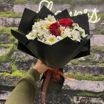 Romantizmin kırmızı tonları ile masumiyetin beyaz zarafetini buluşturan bu özel buket, 2 adet kırmızı gül ve taze beyaz papatyalarla hazırlanmıştır. 💐 Şık siyah ambalajı ve kırmızı kurdelesiyle modern bir dokunuş kazanan bu aranjman, sadelikle zarafeti bir araya getiriyor. 🖤 Royal Flowers farkıyla tasarlanan bu özel çiçek, “Seni seviyorum” demenin sade ama etkileyici yoludur. 🌸 Sevgiliye, eşe, ya da özel birine anlamlı bir jest yapmak isteyenler için mükemmel bir tercihtir. ✨ Hem göz alıcı hem de duygusal bu papatya-gül buketi, sevdiklerinizin gününü güzelleştirmek için en zarif seçimdir.