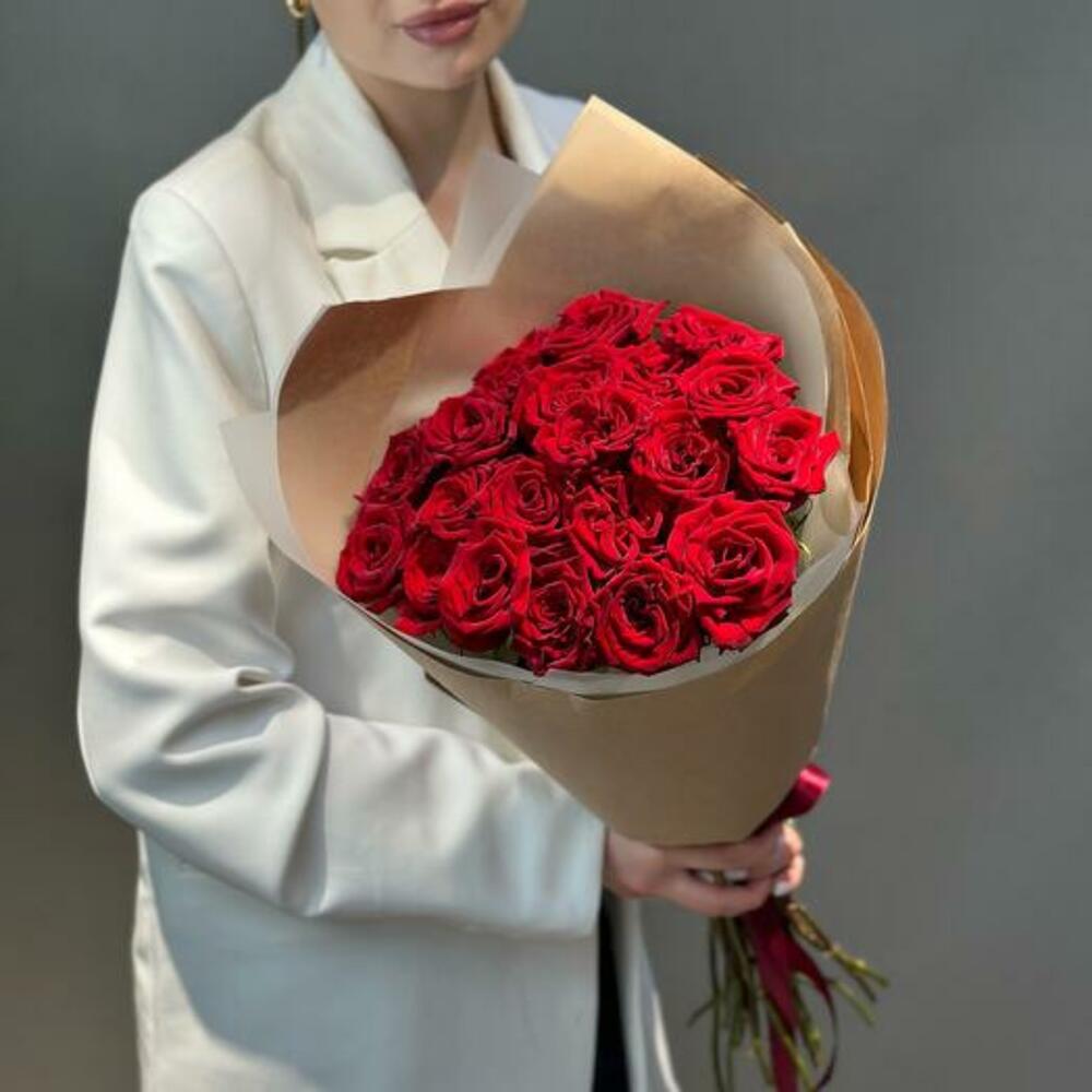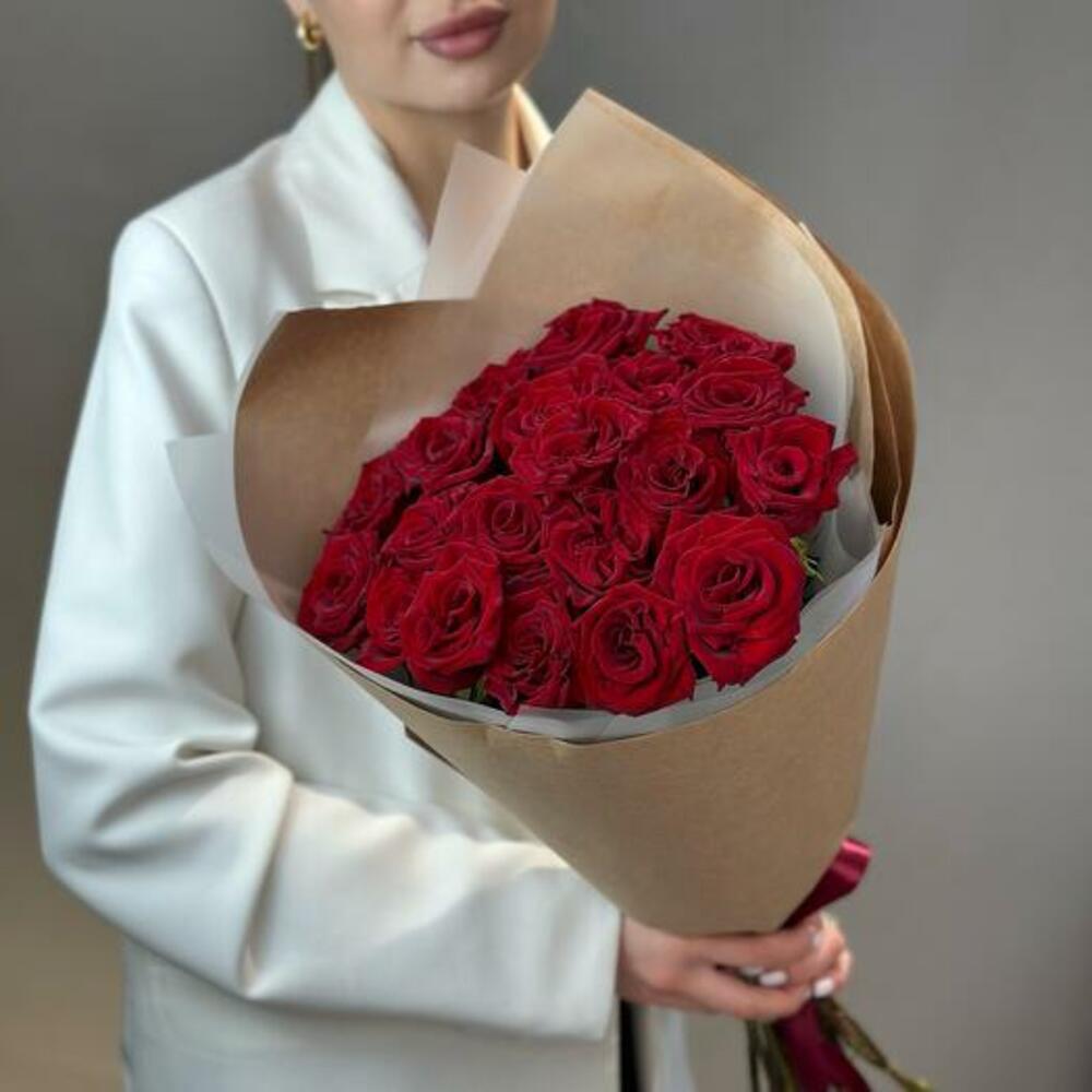 kraft ambalaj - 1 adet kırmızı gül - 21 adet