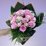 beyaz cipso - 3 adet pembe güller - 21 adet yeşil asparagus - 5 adet