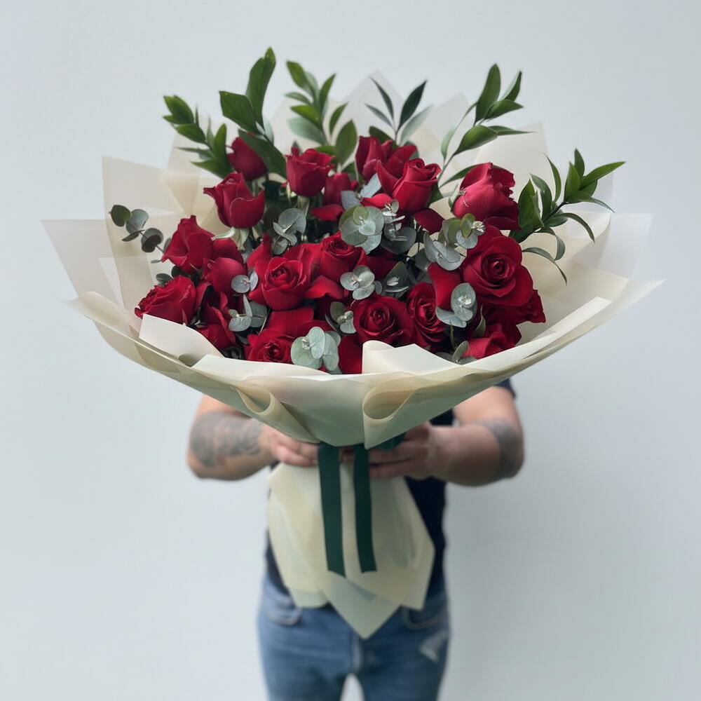 21 Red Roses and Ocaliptus