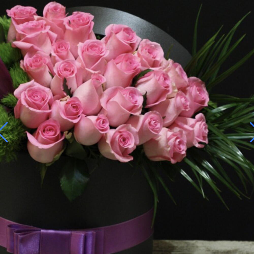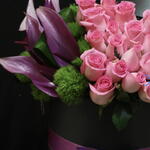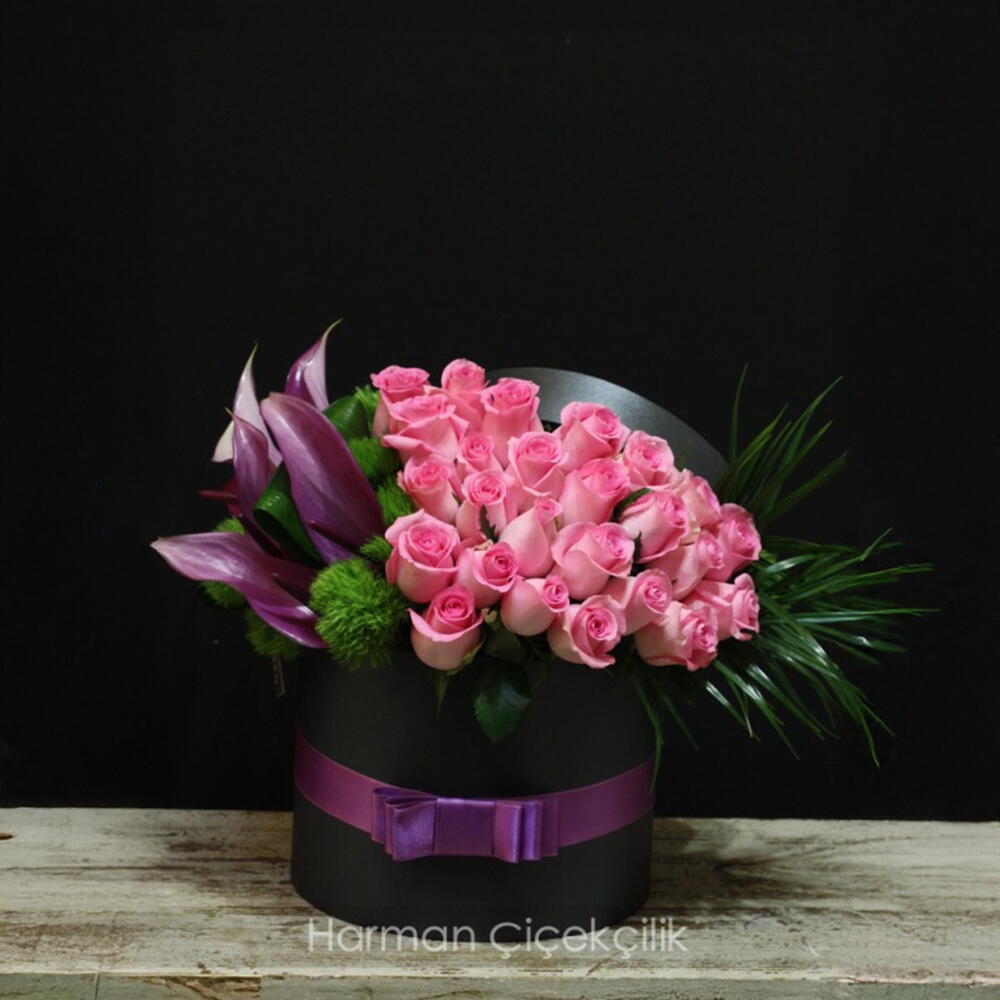 pink roses - 25 adet fenix - 4 adet green trick dianthus - 4 adet mor kalla zambakları - 6 adet box (black) - 1 adet