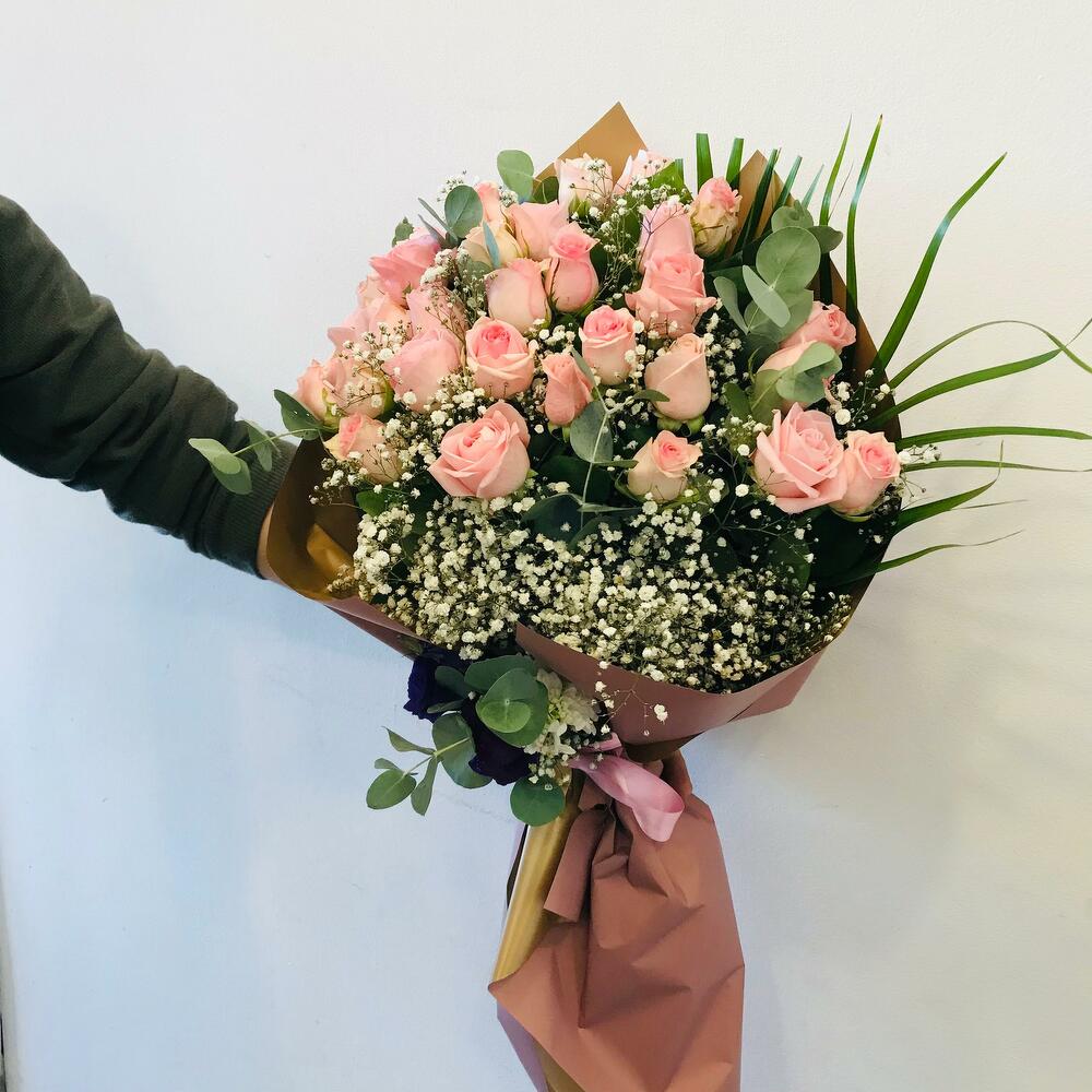 Bu muhteşem çiçek buketi, 29 adet Pembe gülden oluşur. Zarif ve saf bir sevimlilik sunan bu buket, huzur ve saflığın mükemmel bir simgesidir. Kendinizi veya sevdiklerinizi bu özel ve anlamlı buketle şımartın