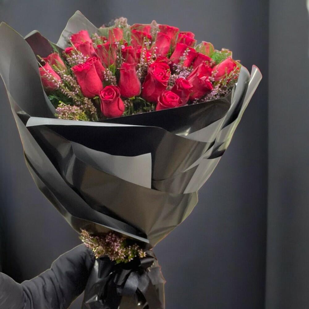 Bu zarif çiçek buketi, 30 adet canlı kırmızı gül ve 33 adet funda yaprağının mükemmel uyumuyla oluşturulmuştur. Parıltısını hiç kaybetmeyen bu buket, özel günlerinizde sevdiklerinize sevginizi ve saygınızı ifade etmeniz için mükemmel bir seçim olacaktır. Ayrıca, 25 adet taze yeşil eklentisi ile doğanın tazeliğini ve canlılığını yansıtmaktadır. Bu çiçek buketi, hem göze hem de kalbe hitap eden özel bir armağan olacaktır.