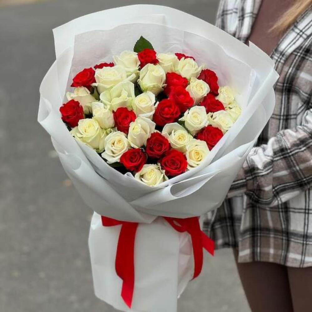 35 Red White Rose Bouquet