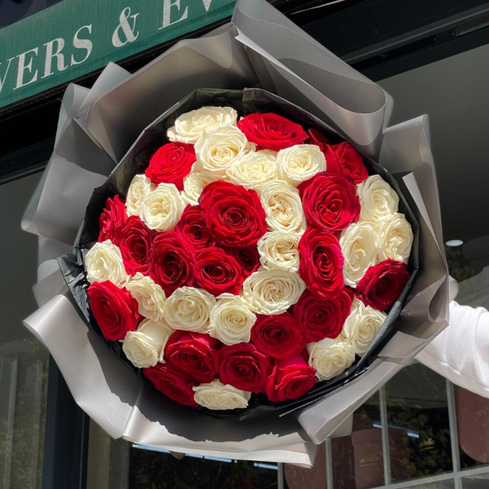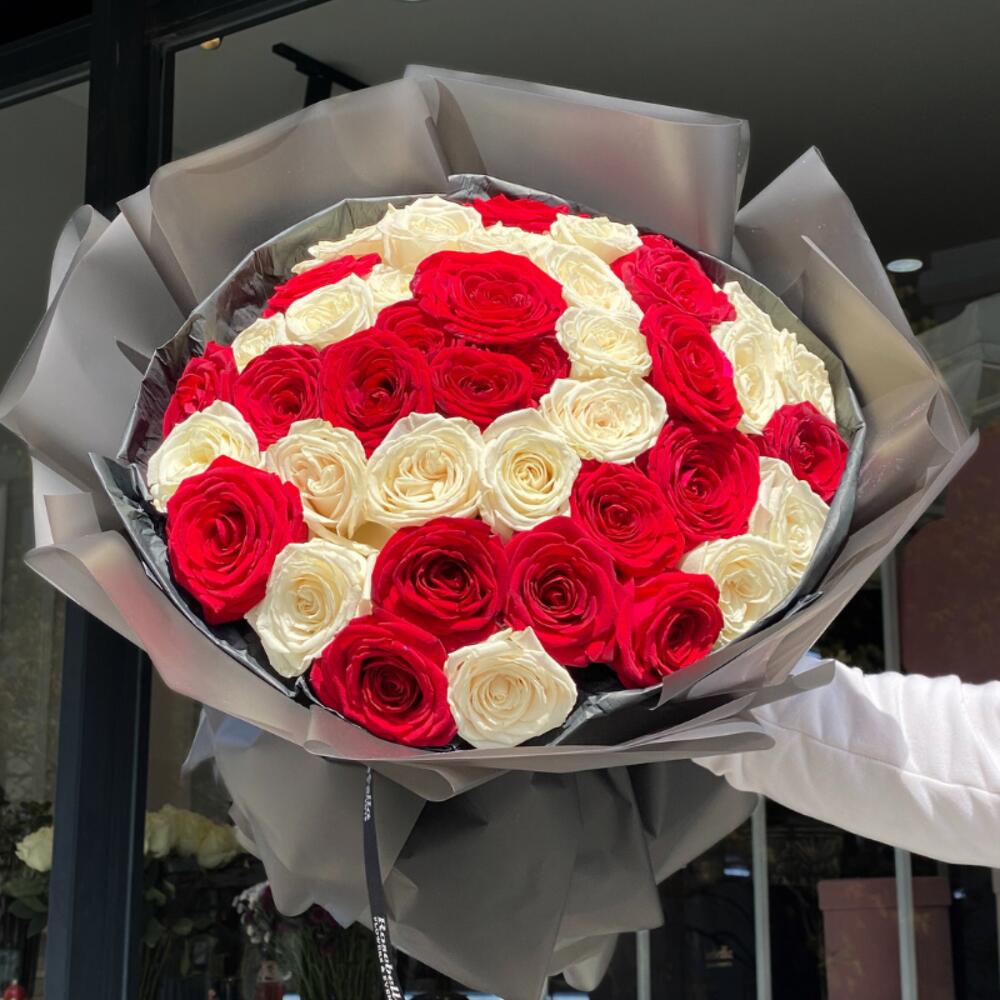 41 Kırmızı Beyaz Ekvator Gulu Buketi