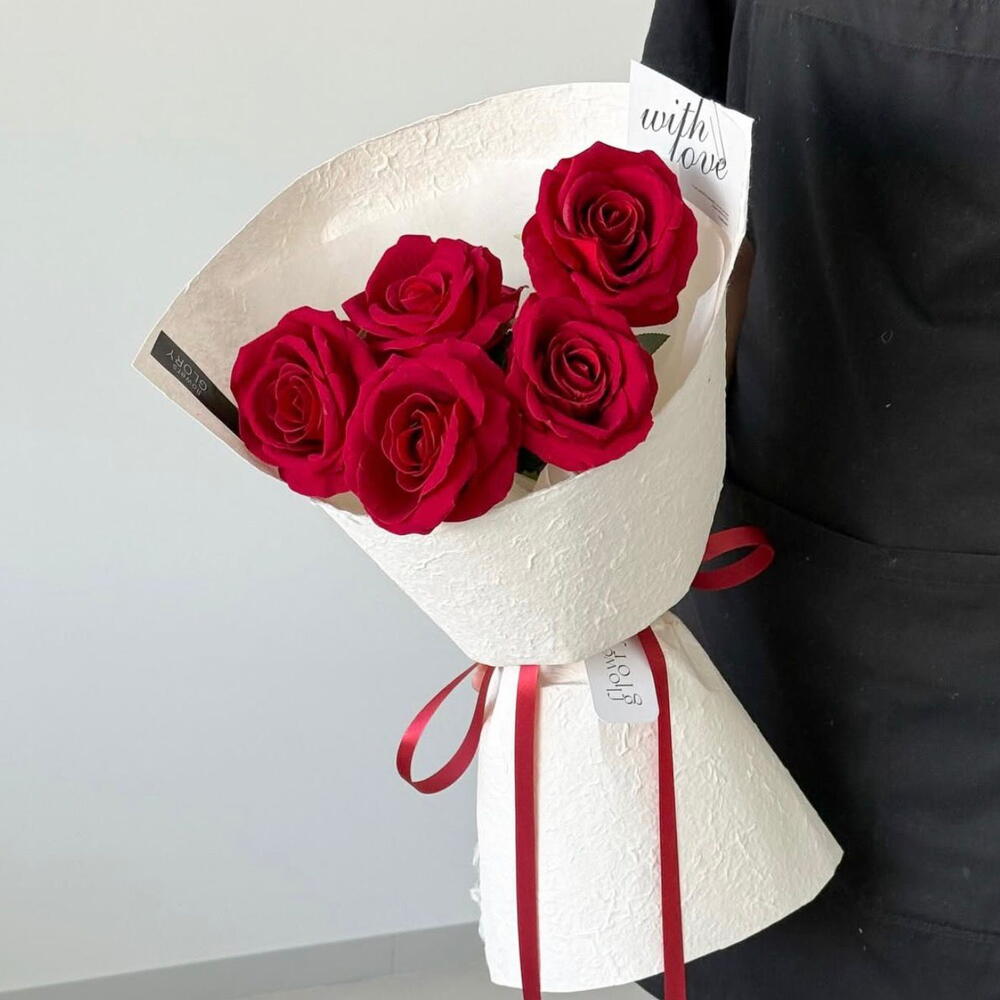 Tutkunun ve aşkın simgesi kırmızı güller, bu özel bukette sade ve güçlü bir zarafet sunar. Beş adet kırmızı gülün uyumlu birlikteliği, romantik ve etkileyici bir görünüm oluşturur. (yapay) Yüksek kaliteli yapay güllerden hazırlanan tasarım, solmayan güzelliğiyle anıları kalıcı hale getirir ve uzun süre ilk günkü şıklığını korur. Aşkı sade ama anlamlı bir şekilde ifade etmek isteyenler için 5’li Kırmızı Gül Buketi, zamansız bir romantizmin zarif yansımasıdır.