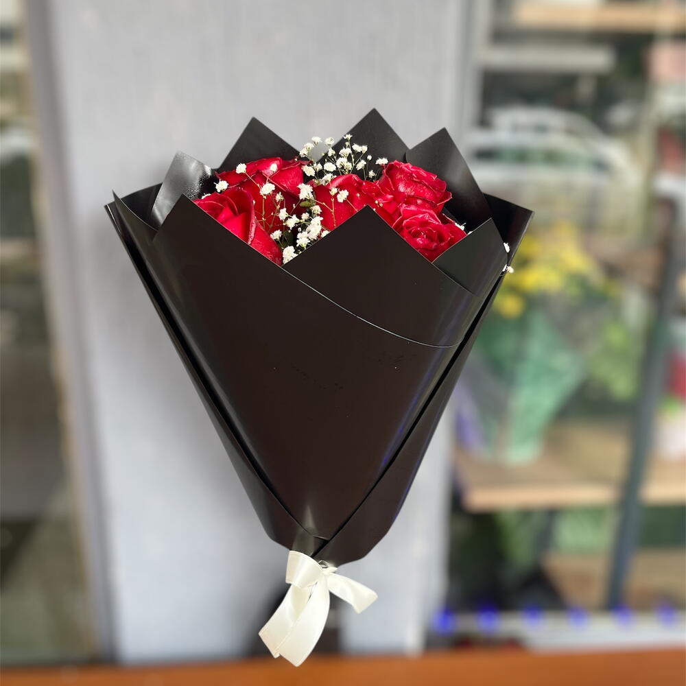 cipso - 5 adet kırmızı ithal gül - 5 adet sakız yeşillik - 5 adet