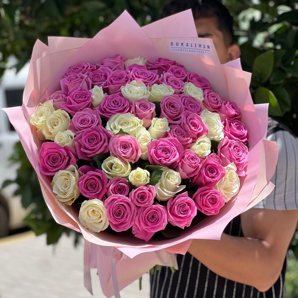 55 beyaz pembe gül buketi