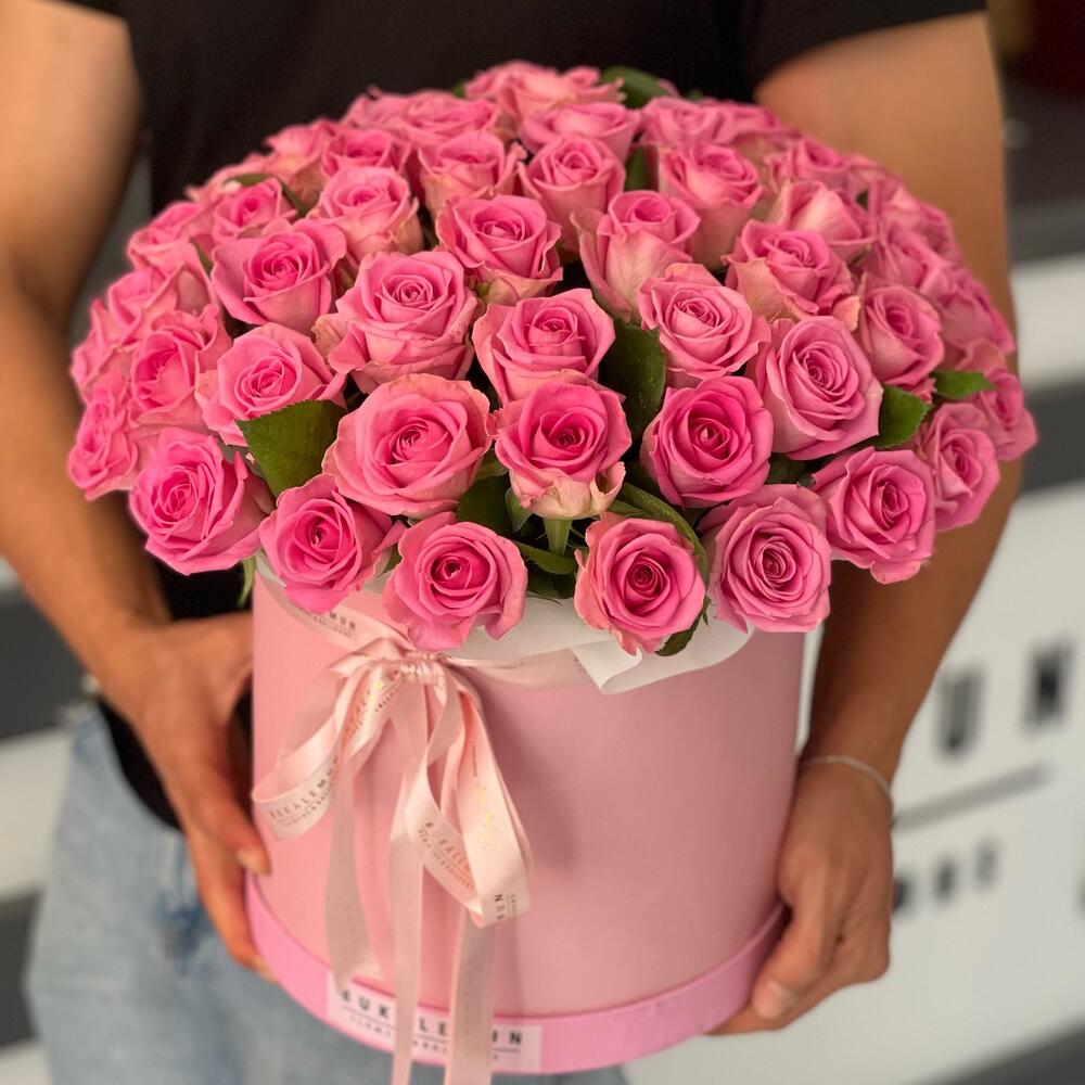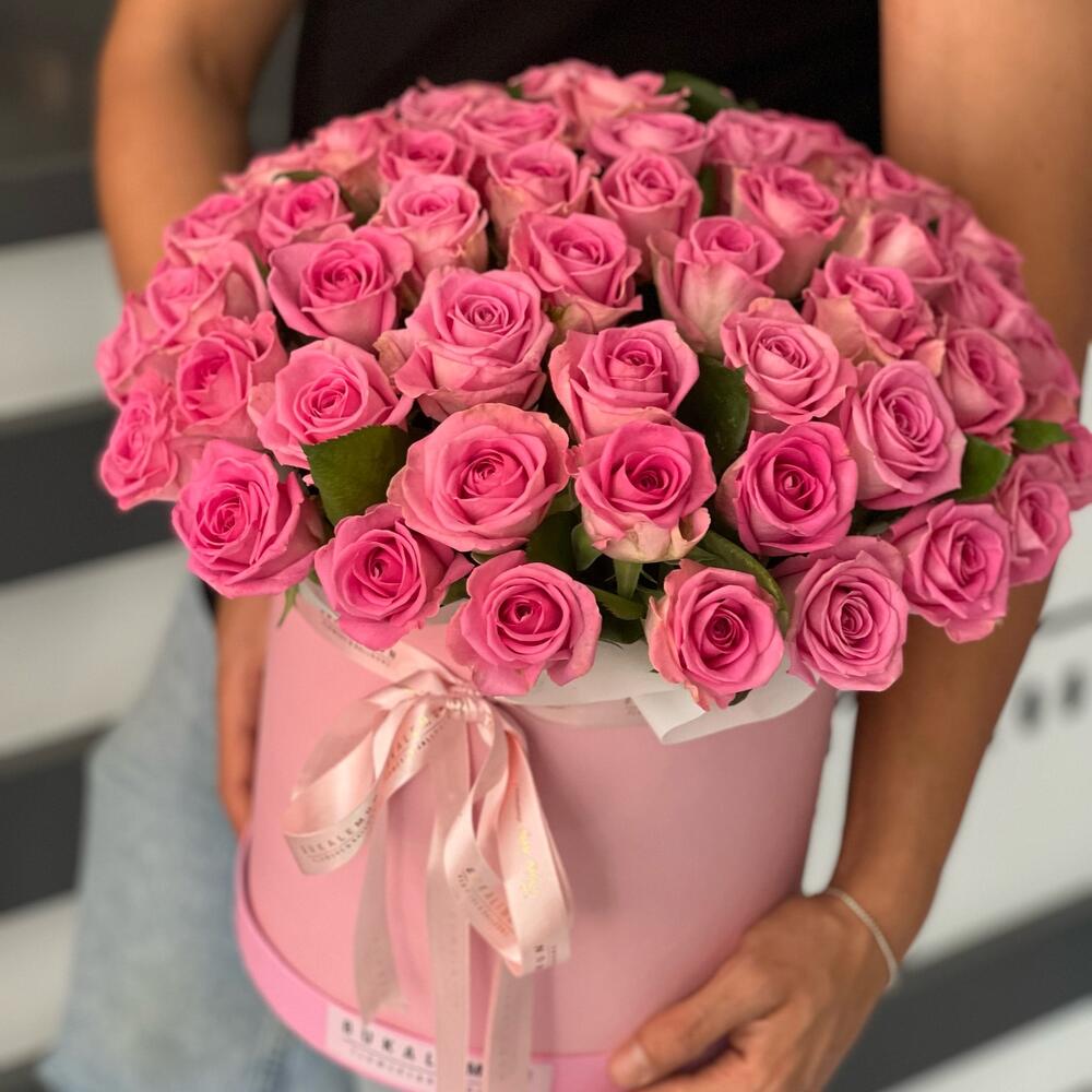 61 pink roses in box