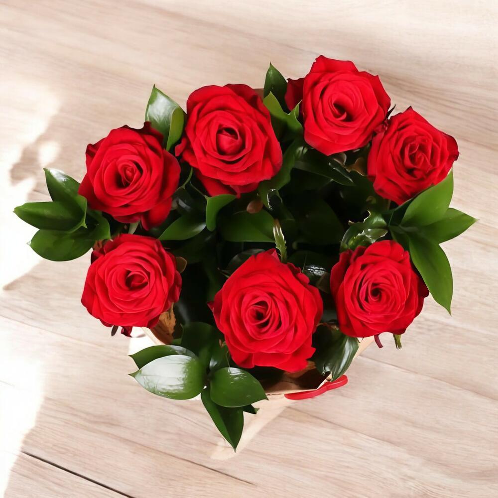 7 Adet Kırmızı Gül Buketi, sevginizi en zarif ve şık şekilde ifade etmenin en güzel yoludur. Tutkunun ve romantizmin rengi olan kırmızı güller, şık ve zarif bir ambalaj ile süslenerek özel günlerinize anlam katıyor. Bakım Önerileri: Buketinizin tazeliğini koruması için her 2 günde bir suyu değiştirin. Sapları 2 cm eğimli keserek suyun daha iyi çekilmesini sağlayın. Direkt güneş ışığından ve rüzgardan uzak, serin bir ortamda muhafaza edin.
