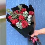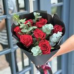 7 adet 50cm taze kırmızı gül ve okalüptuslar